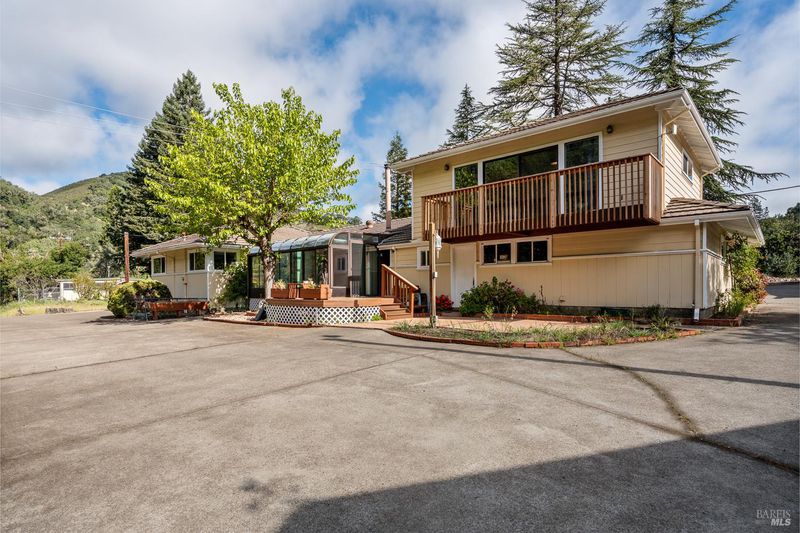 Nestled along the serene banks of Cold Creek, this rare 1.74-acre property offers two homes, exceptional privacy, and a truly peaceful setting surrounded by nature. The main residence features 2 bedrooms, 2 bathrooms, and approximately 2,251 sq ft of thoughtfully designed living space. Inside, you'll find a well-appointed kitchen with tile flooring, granite countertops, and stainless steel appliances, opening into a warm and inviting living room with hardwood floors and a cozy fireplace. The primary bath offers a spa-like feel with a jetted tub, tile floors, and granite counters. A charming solarium with a wood stove provides the perfect space to relax year-round, while the upstairs game room with wet bar and private balcony overlooks the tranquil sounds of Cold Creek. Additional highlights include a tile roof, central heating and air, and an attached 2-car garage with a full bathroom. Outdoor amenities abound with a spacious deck overlooking the creek, ideal for enjoying peaceful summer days and the soothing sounds of flowing water. The property is well-equipped with a 30x35 detached garage/shop, 20x40 enclosed RV parking, a 15x25 chicken coop with storage, and a garden area complete with greenhouse and garden shedperfect for those seeking a self-sustaining lifestyle. The second home offers 2 bedrooms, 1 bathroom, and approximately 924 sq. ft, featuring a spacious living room, multi-split heating system, wall A/C, and a dedicated laundry room with washer and dryer. Additional features include a metal roof, detached single-car garage, storage shed, and its own private access to Cold Creek. Whether you're looking for multi-generational living, rental income potential, or a private retreat, this unique creekside property offers endless possibilities.
