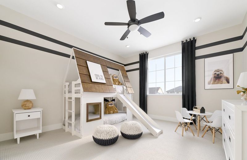 This beautiful Plan 1 features an open floor plan with covered patio, cozy loft, quartz kitchen countertops, gray cabinetry, stainless steel KitchenAid appliances, full height backsplash and more. This home will be ready in spring 2026. Photos are of model home, not of actual home.