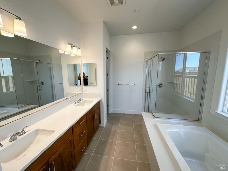- Double Sinks, Shower Stall(s), Tile, Tub, Window