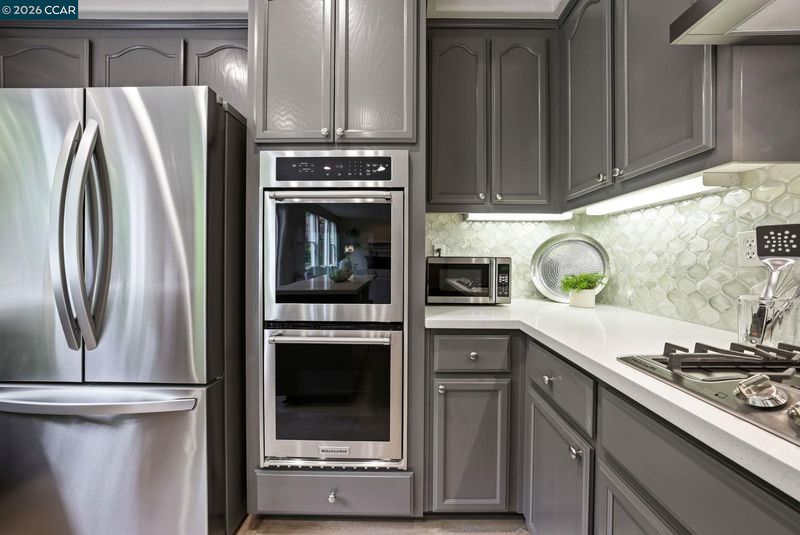Enjoy California living at its best in this beautifully updated home in the heart of San Ramon. Filled with natural light and designer touches throughout, this move-in ready home offers generous living spaces and an ideal layout for both everyday living and entertaining. A welcoming living room and formal dining room set the stage for refined living, while the open-concept gourmet kitchen—featuring quartz countertops, central island, newer appliances, gas cooktop, double ovens, floating shelves, and a striking custom tile backsplash—flows effortlessly into the expansive family room and stunning backyard retreat. Luxurious vinyl plank flooring and a cozy fireplace add warmth and elegance throughout the main living areas. Upstairs, an exquisite primary suite awaits, offering a spa-inspired designer bathroom with a soaking tub, oversized shower, Pottery Barn dual sink vanity, gorgeous wallpaper, elegant hardware, and a walk-in closet with custom built-in storage. Three additional spacious bedrooms, updated main bathroom, and dedicated laundry area complete the optimal design for easy everyday living. Step outside to your own private retreat—an entertainer’s delight with a mature Japanese maple tree, curated planters, lemon and lime trees, azaleas, and inviting spaces perfect for relaxing or hosting gatherings. Ideally located near top-rated San Ramon schools, premier shopping and restaurants, parks, recreation, and great commute access, this home checks all the boxes!