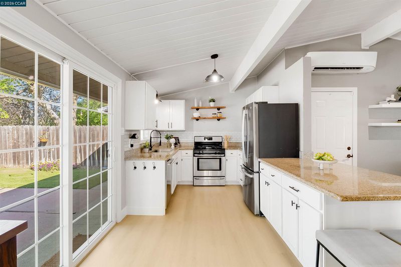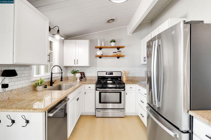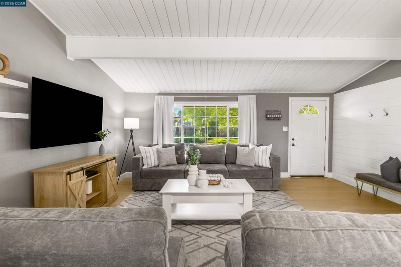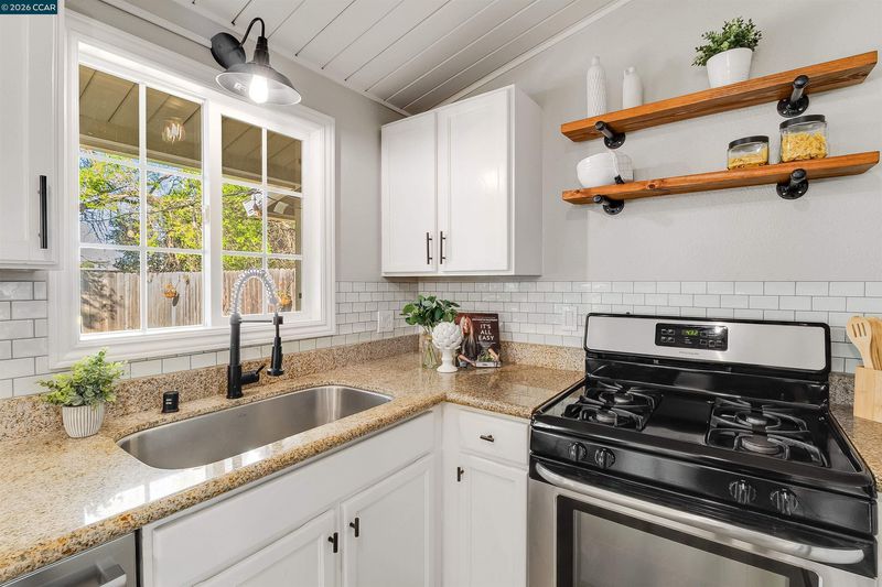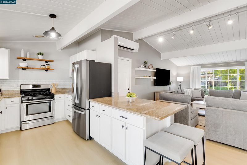 Modern upgrades, effortless style, and single-story living in the heart of Concord — 2261 Gehringer Dr delivers comfort and character in one beautifully curated package. Step inside to brand new flooring and baseboards flowing throughout, complemented by dual-pane windows and sliders that flood the home with natural light. The kitchen makes a statement with granite countertops and stainless steel appliances, while both bathrooms have been thoughtfully renovated with clean, modern finishes. Roof and Solar panels only a few years old with an EV charger bring efficiency into the spotlight. Vaulted open-beam ceilings with shiplap in the living room add just the right touch of architectural charm. Out back, the energy shifts into full-on entertainer mode with an open, inviting yard designed for gathering and unwinding, complete with a putting green and fire pit that turn ordinary evenings into something worth lingering over. All just minutes from downtown, I-680, and the always-loved Todos Santos Plaza — polished, practical, and carrying just the right amount of edge, this is Concord living done right.