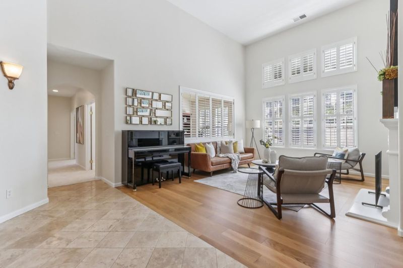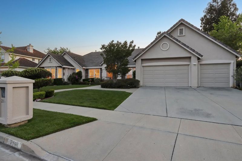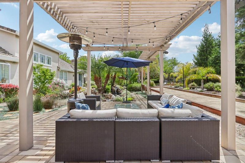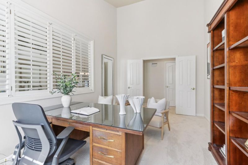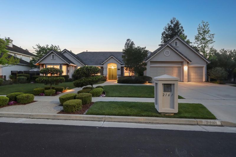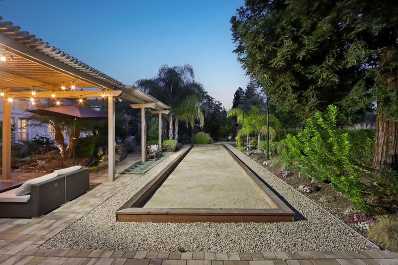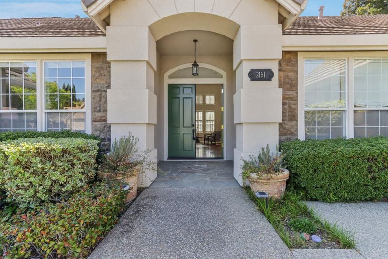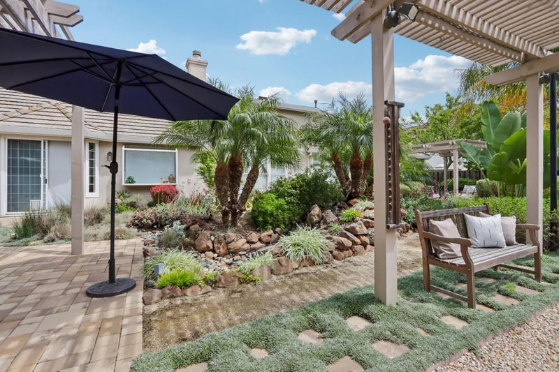 Experience refined living in the prestigious Hillstone neighborhood with this stunning Greenbriar-built estate from the exclusive Bennington Collection. Ideally northeast-facing, this 5-bed, 3-bath home offers ~3,000 sq. ft. on a rare ~0.367-acre lot. Step into soaring ceilings and a light-filled open layout with a formal marble entry. The 2021 designer kitchen features porcelain countertops, custom cabinetry, pantry, and Wi-Fi-enabled Thermador appliances, including an extended built-in fridge and wine refrigerator. The adjacent family room offers wood floors, automatic Hunter Douglas blinds, and a built-in entertainment niche. The primary suite is a private retreat with a spa-like bath and serene backyard views. A converted 5th bedroom serves as an office, with additional rooms ideal for guests or multigenerational living. Upgrades include Tesla charging, smart home features, blackout blinds, plantation shutters, water filtration, and more. The backyard is a tranquil garden sanctuary with a walking trail, cascading waterfall, sitting areas, and bocce court. Located on a quiet street near tech shuttle stops, Evergreen Village Square, shopping, dining, Silver Creek Valley Country Club, and top-rated schools. 2161 Shadow Ridge Way is luxury redefined.