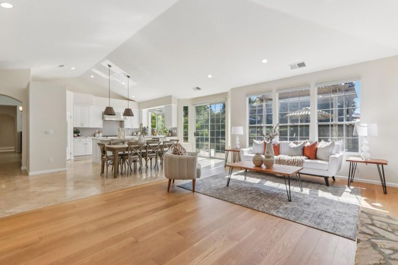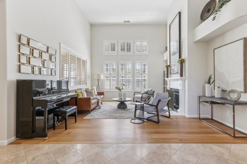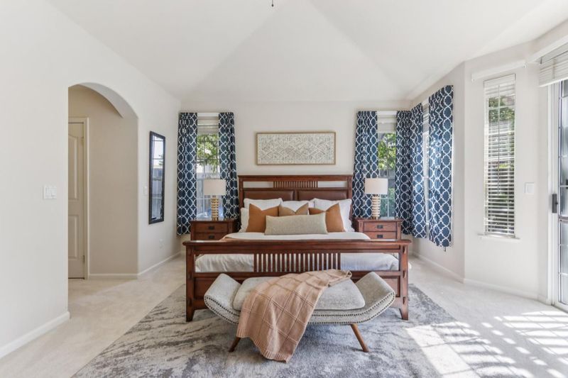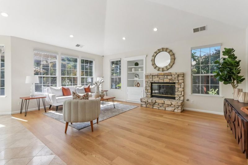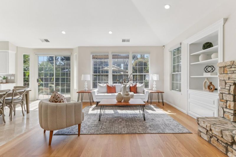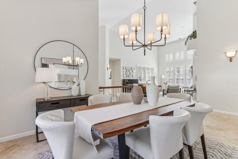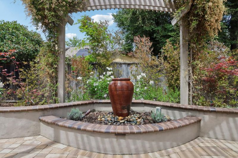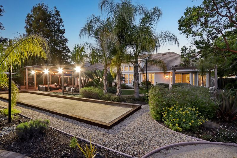 Experience refined living in the prestigious Hillstone neighborhood with this stunning Greenbriar-built estate from the exclusive Bennington Collection. Ideally northeast-facing, this 5-bed, 3-bath home offers ~3,000 sq. ft. on a rare ~0.367-acre lot. Step into soaring ceilings and a light-filled open layout with a formal marble entry. The 2021 designer kitchen features porcelain countertops, custom cabinetry, pantry, and Wi-Fi-enabled Thermador appliances, including an extended built-in fridge and wine refrigerator. The adjacent family room offers wood floors, automatic Hunter Douglas blinds, and a built-in entertainment niche. The primary suite is a private retreat with a spa-like bath and serene backyard views. A converted 5th bedroom serves as an office, with additional rooms ideal for guests or multigenerational living. Upgrades include Tesla charging, smart home features, blackout blinds, plantation shutters, water filtration, and more. The backyard is a tranquil garden sanctuary with a walking trail, cascading waterfall, sitting areas, and bocce court. Located on a quiet street near tech shuttle stops, Evergreen Village Square, shopping, dining, Silver Creek Valley Country Club, and top-rated schools. 2161 Shadow Ridge Way is luxury redefined.