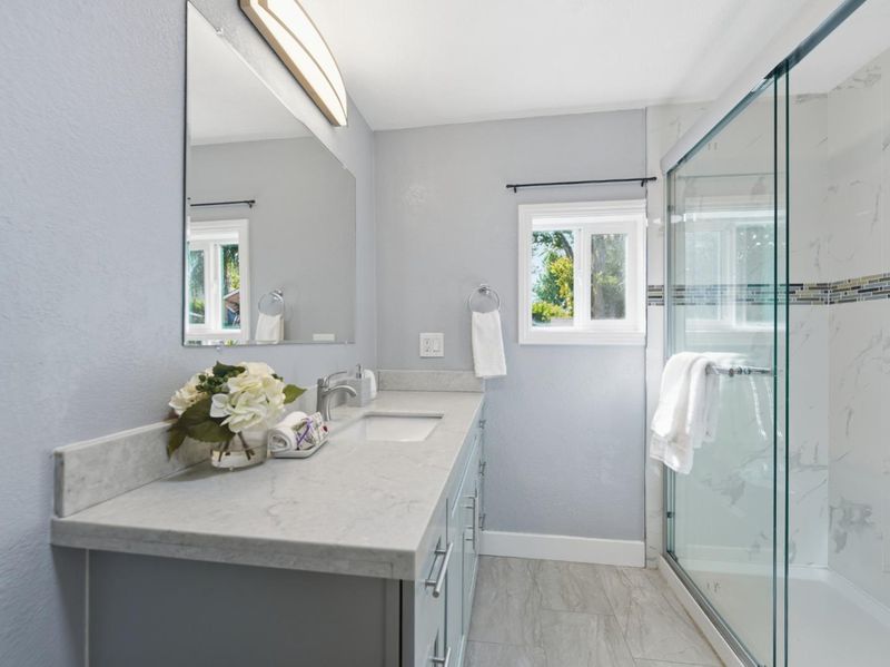 - Dual Flush Toilet, Full on Ground Floor, Shower and Tub, Stall Shower, Tile, Updated Bath