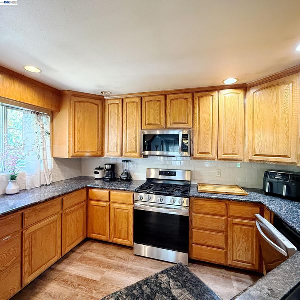- Dishwasher, Gas Range, Plumbed For Ice Maker, Microwave, Range, Refrigerator, Self Cleaning Oven, Washer, Gas Water Heater, 220 Volt Outlet, Breakfast Bar, Counter - Solid Surface, Disposal, Gas Range/Cooktop, Ice Maker Hookup, Range/Oven Built-in, Self-Cleaning Oven, Updated Kitchen