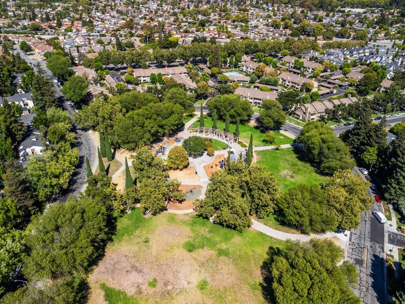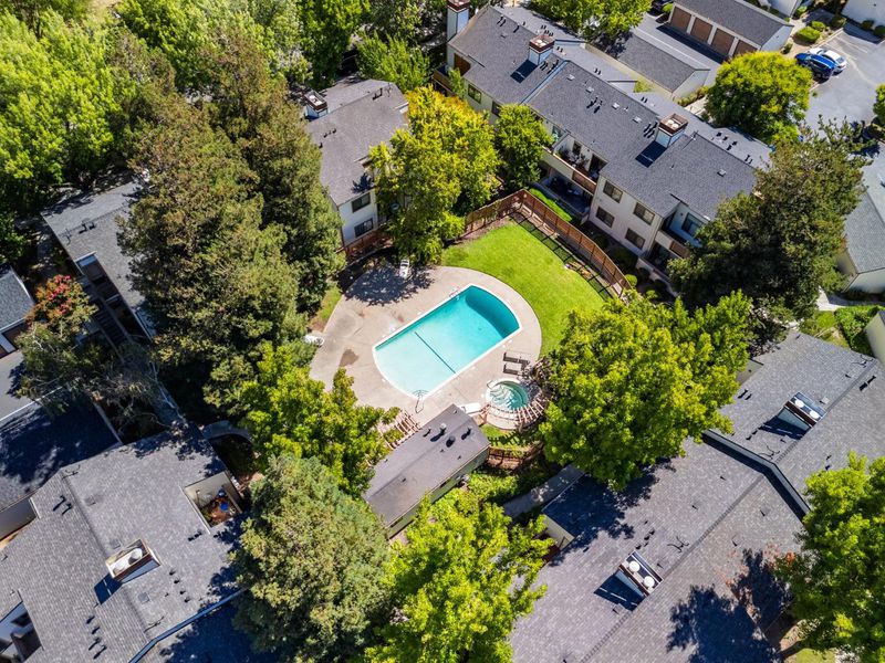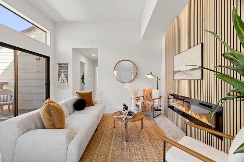 Imagine morning walks through Townsend Park, then coming home to your own light-filled sanctuary. This 2-bedroom, 1-bath condo isn't just updated. It's transformed. Soaring vaulted ceilings flood the great room and kitchen with natural light, creating an airy backdrop for daily life. The kitchen dazzles with quartz countertops and matching backsplash, sleek cabinetry, and waterproof flooring. The fully permitted bathroom brings spa-like luxury with brushed gold fixtures, a contemporary vanity, and luxury vinyl flooring. Your great room centers around a stunning custom feature wall with wood-slat accents and a built-in electric fireplace, pre-wired and ready for entertaining. Fresh designer paint, plush new carpet, sleek lighting, and premium finishes throughout mean you can simply unpack and start living. A rare dedicated laundry room inside, private balcony, and ground-level garage make everyday life effortless. Enjoy the community pool, nearby green spaces and courts, plus minutes to 101/880, SJC Airport, and Silicon Valley's top employers. This one won't last long. Come see what makes it special.