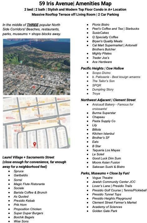 Take a look before we go on the market! Nestled among the grand estates of Laurel Heights and Presidio Heights, this top-floor sanctuary offers a sophisticated, manageable entry point into one of San Francisco's most exclusive enclaves. Whether serving as an elite starter home or a low-maintenance pied--terre to be cherished for generations, this residence provides a prestigious lifestyle in a perfectly scaled package. Occupying the top two levels of a meticulously maintained, owner-occupied two-unit Deco building (remodeled in 2007), the condo is detached on three sides, bathing the contemporary architecture in natural light. The true centerpiece is the massive, no maintenance, glass-enclosed 360-degree roof deck. Directly accessible from the chef's kitchen and living area, this outdoor great room offers a premier stage for entertaining with views stretching from the sunsets of Ocean Beach to the towers of the Golden Gate. It is a premier stage for entertaining against the backdrop of the city's most iconic skyline. The interior features a statement fireplace, integrated speakers, and a culinary kitchen with top-tier appliances designed for a modern host. To the rear, two quiet en-suite bedrooms with custom closets provide ultimate privacy with no shared walls and breathtaking sunset views from the large windows. Practicality meets luxury with in-unit W/D, updated systems, and an enchanted entry courtyard. Parking is effortless with a large independent garage featuring abundant custom storage, plus a second car spot in the driveway. Located on a remarkably quiet, flat, tree-lined block that ends at popular Laurel Village, you are also steps from Sacramento Street's fine dining, high-design boutiques, and the Presidio's world-class trails. An absolute must-see that offers an instant lifestyle upgrade in the city's most coveted corridor.
