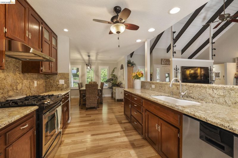 - Dishwasher, Gas Range, Plumbed For Ice Maker, Refrigerator, Dryer, Washer, Electric Water Heater, Stone Counters, Eat-in Kitchen, Disposal, Gas Range/Cooktop, Ice Maker Hookup, Pantry