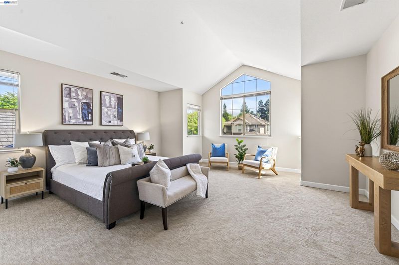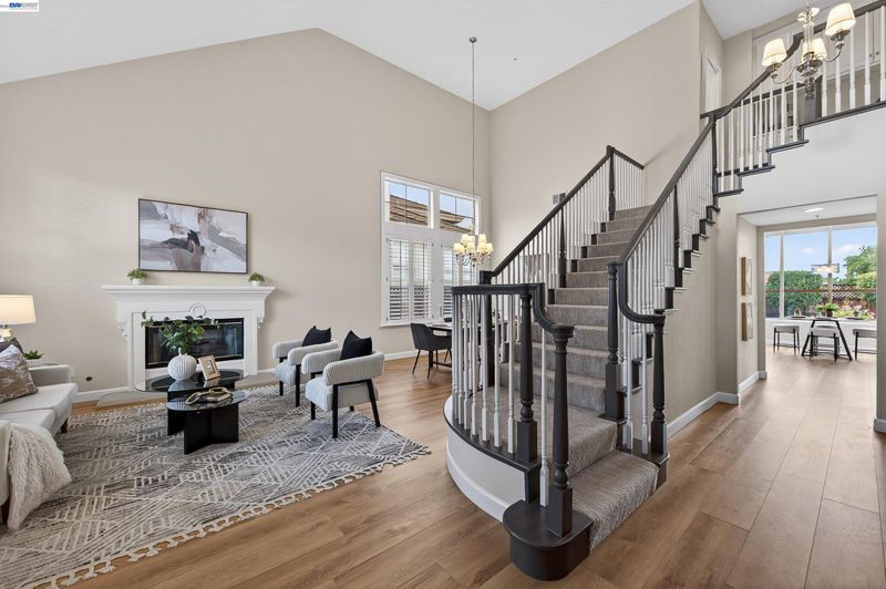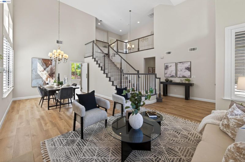 Move-in ready two-story home in one of Pleasanton’s premier gated communities with top-rated Pleasanton schools. Soaring ceilings and walls of windows fill the home with natural light, highlighting fresh interior paint and new flooring throughout. Desirable main-level bedroom with updated full bath offers ideal flexibility for guests, multigenerational living, or home office. Upgrades include HVAC, water heater, EV charger outlet, reverse osmosis system, rear fencing, and finished garage floor. Enjoy a private backyard with blooming roses and mature lemon and orange trees—perfect for California indoor-outdoor living. 24/7 guard-gated security and close to Ruby Hill Community Center with pool, tennis, sports courts, and playground. Optional private golf club membership available. Open Friday 10-1, Saturday and Sunday 1-4.