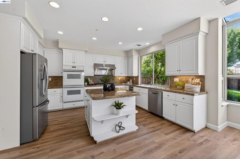 - Dishwasher, Double Oven, Gas Range, Oven, Refrigerator, Stone Counters, Gas Range/Cooktop, Kitchen Island, Oven Built-in