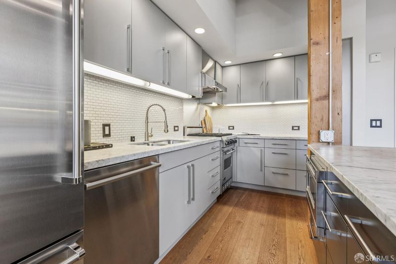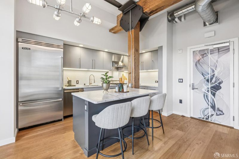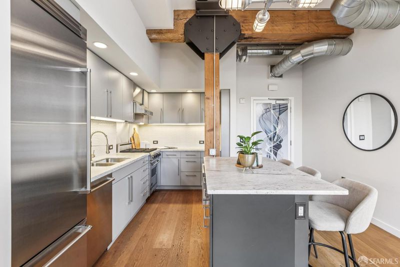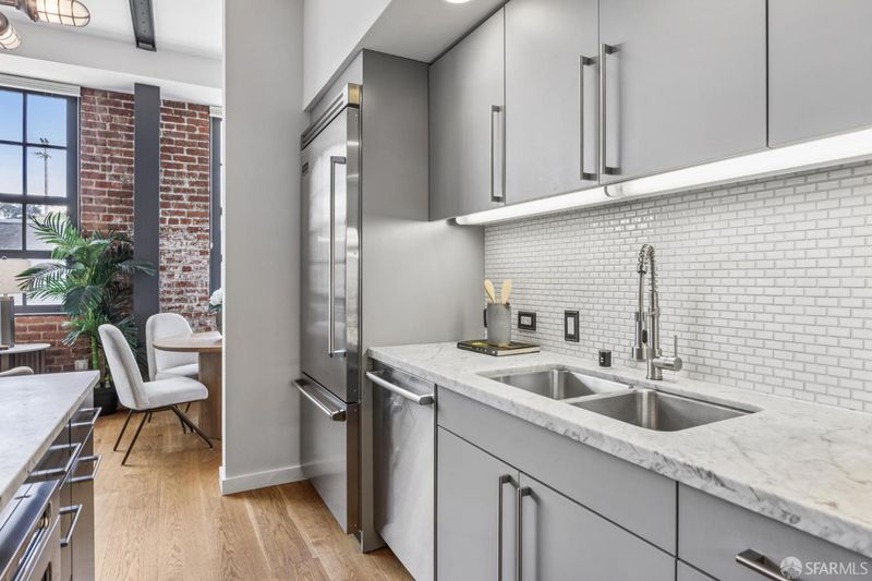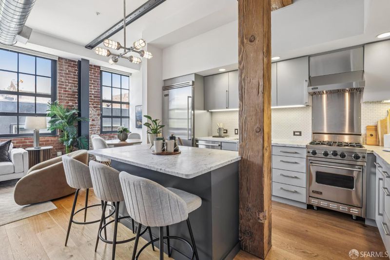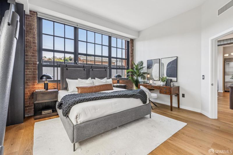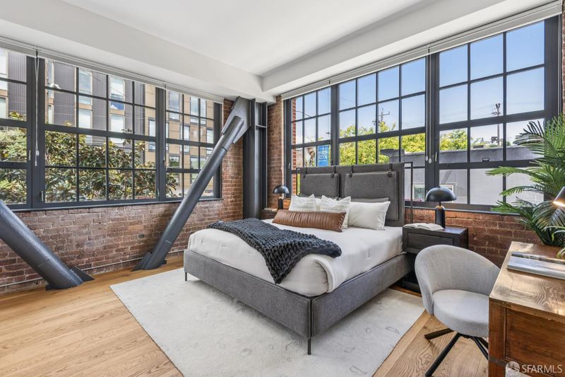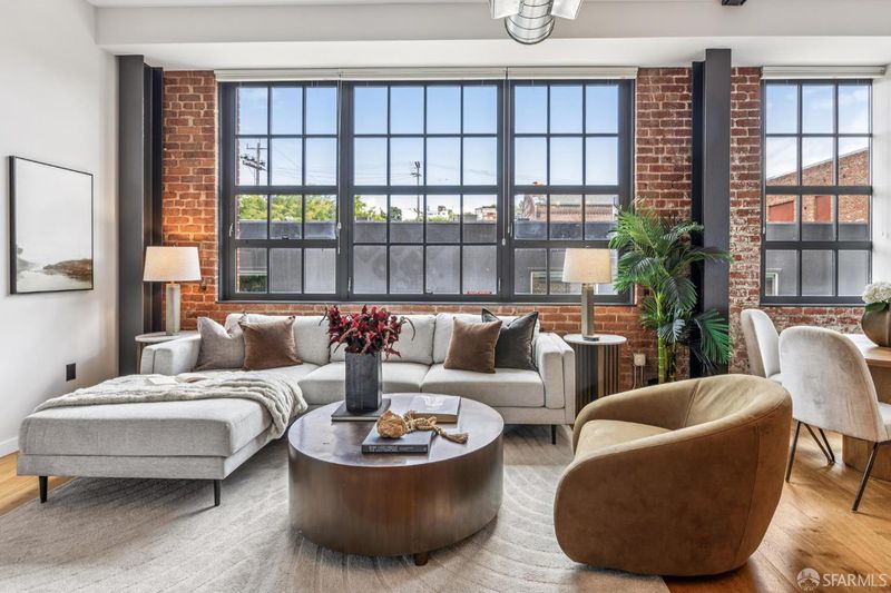 Rare opportunity to own one of only three larger one bedroom residences in this iconic Mission building, where industrial heritage meets elevated, design forward living. This home feels both curated and effortlessly cool. Exposed red brick, dramatic warehouse style windows, and bold steel beams create a striking architectural backdrop, while refined designer finishes bring warmth and livability. The coveted corner orientation fills the home with natural light and enhances the sense of scale, delivering a true loft style experience. The chef's kitchen, appointed with Viking appliances, flows seamlessly into an expansive living and dining area ideal for both everyday living and elevated entertaining. Additional features include air conditioning, one car parking, and an oversized walk in closet rarely found in a one bedroom home. Residents enjoy award winning common spaces including lush landscaped gardens, a fire pit lounge, and an outdoor BBQ area, offering a private retreat in the heart of the city. Perfectly positioned in the vibrant Mission District with exceptional access to some of San Francisco's most sought after destinations including Heath Ceramics, Tartine Manufactory, Trick Dog, Mission Cliffs, and Gus's Community Market. A rare, design driven residence for those who value style, scale, and location.