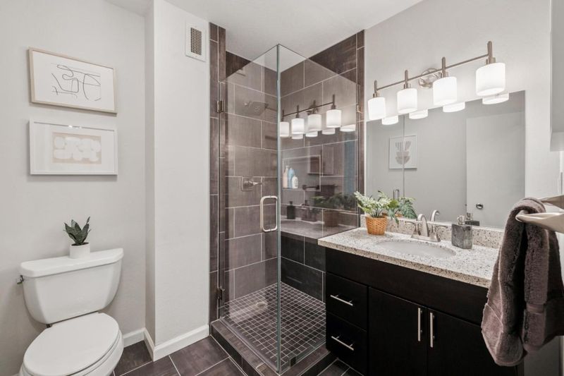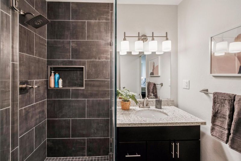 Shower and Tub, Solid Surface, Stall Shower, Stone, Tile, Updated Bath