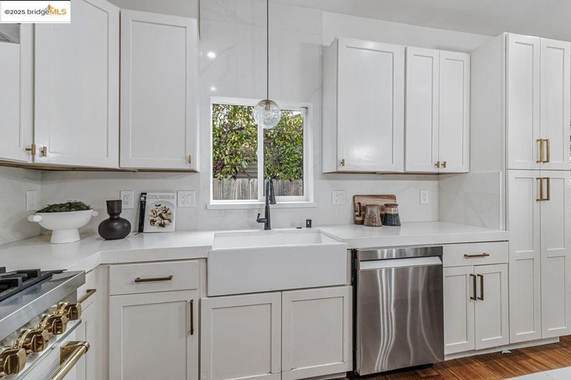 - Dishwasher, Free-Standing Range, Refrigerator, Gas Water Heater, Breakfast Bar, Breakfast Nook, Counter - Solid Surface, Stone Counters, Eat-in Kitchen, Kitchen Island, Range/Oven Free Standing, Updated Kitchen