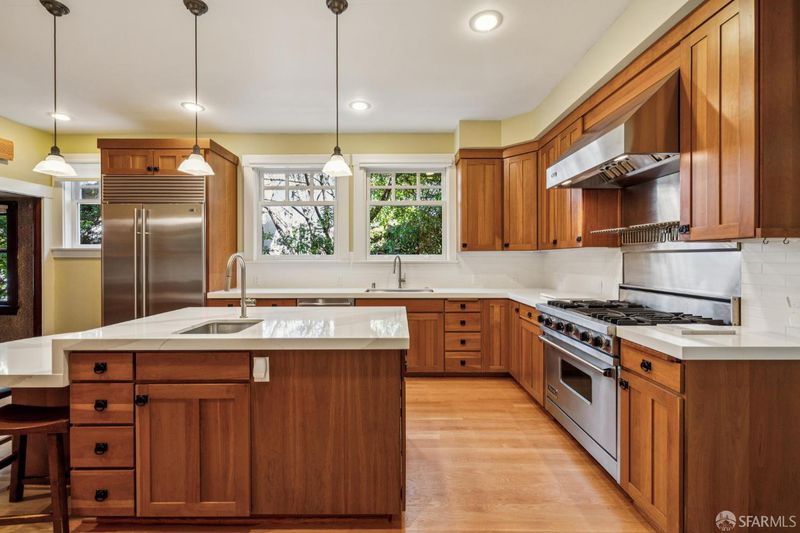 Nestled on one of the most picturesque blocks in Ingleside Terraces, this beautifully maintained original Craftsman residence at 60 Mercedes Way is a rare offering that seamlessly blends timeless architectural character with thoughtful modern comforts. Rich in period detail, the home showcases classic craftsmanship throughoutfrom refined millwork and elegant proportions to its warm, inviting living spaces. The gracious living room is anchored by a wood-burning fireplace, creating a sophisticated yet welcoming setting, while two additional gas-insert fireplaces provide comfort and ambiance in other gathering areas. A stunning formal dining room, highlighted by striking wood-beam ceilings, offers an elegant setting for both intimate dinners and grand entertaining. Just adjacent, a private office is beautifully enclosed by classic pocket doorsideal for today's work-from-home lifestyle while maintaining architectural integrity. Offering four bedrooms and three and a half bathrooms, the home features a versatile and well-considered floor plan designed for both everyday living and refined entertaining. Three of the four bedrooms and two full baths are on the upper level and in addition to that there is a large sunroom that runs the back of the house overlooking the garden. The lower level reveals a spacious family or media roomperfect for movie nights, relaxation, or hosting guests. Surrounded by lush, curated landscaping, both the front and rear gardens provide serene outdoor retreats, enhancing the home's sense of privacy and charm. A detached two-car garage equipped with an EV charger adds modern convenience to this classic property. Beyond the home, Ingleside Terraces is celebrated for its tree-lined streets, distinctive architecture, and strong sense of community. Residents enjoy close proximity to the vibrant Ocean Avenue corridor, where a variety of local cafs, neighborhood restaurants, and everyday conveniences create a lively yet approachable atmosphere. The Active HOA offers events for its residents including an Easter Egg Hunt and the annual Octoberfest Picnic. Nearby shopping hubs such as Stonestown Galleria and West Portal Village offer an expanded selection of retail, dining, and entertainment options.Outdoor enthusiasts will appreciate easy access to the expansive green spaces of nearby parks and the recreational amenities at Lake Merced, providing opportunities for walking, golf, and lakeside leisure.