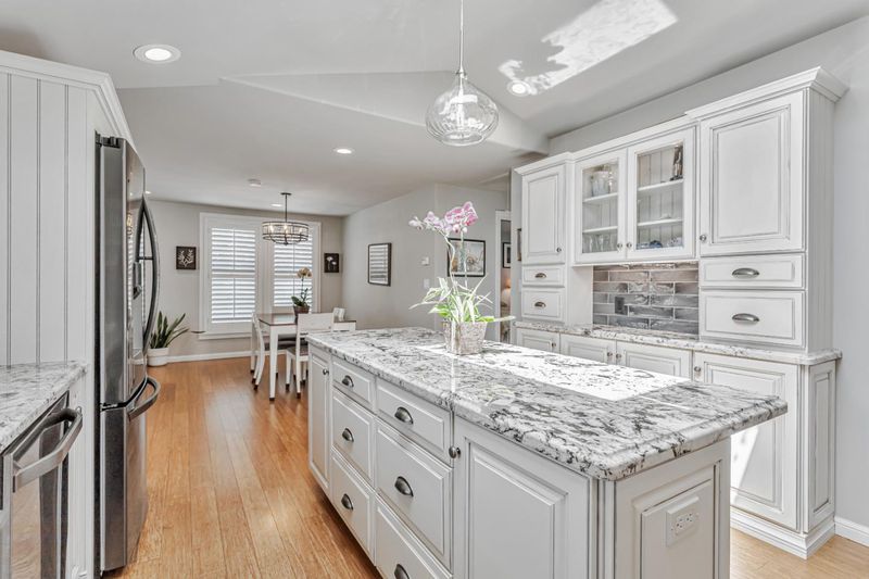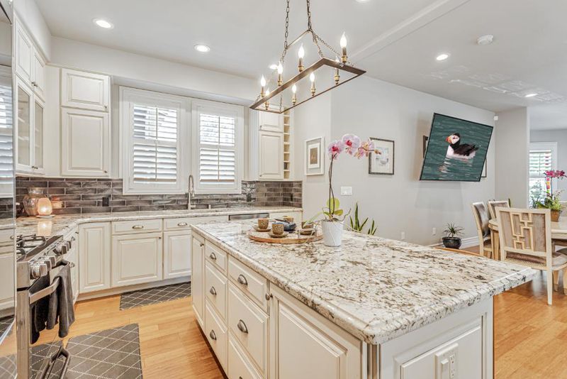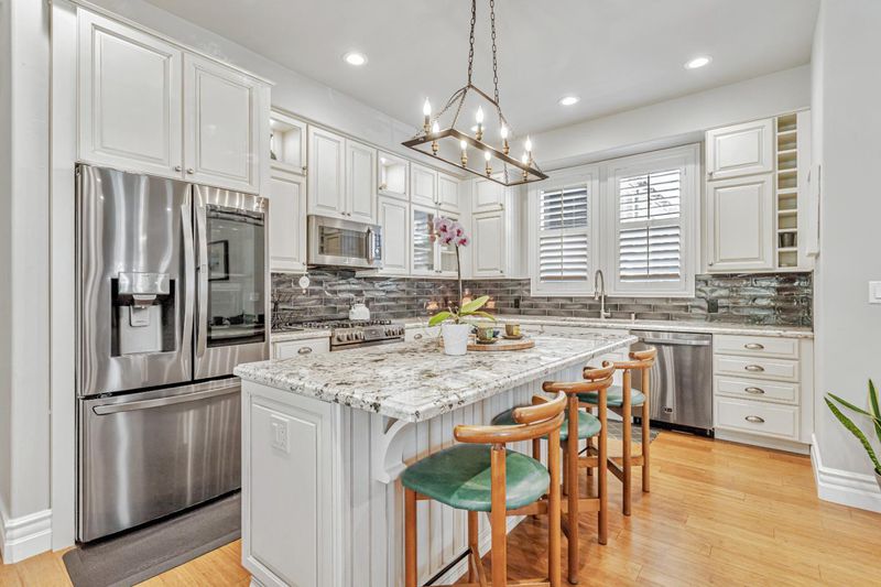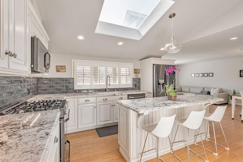 - Countertop - Granite, Dishwasher, Exhaust Fan, Garbage Disposal, Hood Over Range, Hookups - Gas, Hookups - Ice Maker, Island, Microwave, Oven - Self Cleaning, Oven Range - Gas, Refrigerator, Skylight, Warming Drawer