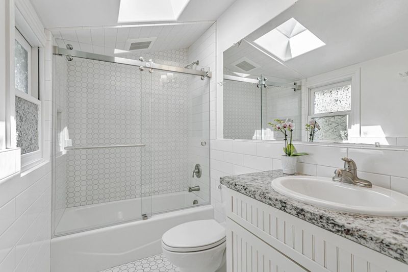 - Full on Ground Floor, Granite, Half on Ground Floor, Shower over Tub - 1, Skylight, Tile, Tub in Primary Bedroom, Updated Bath