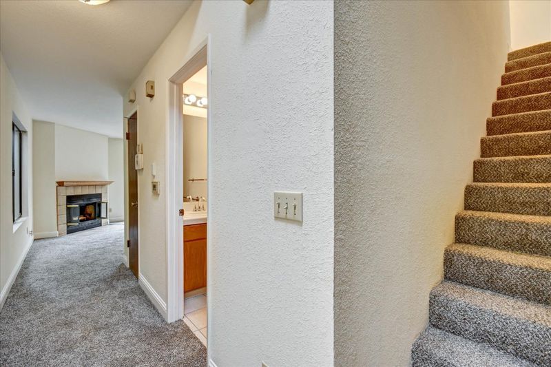 Attractive Rose Terrace Townhome (end unit). There are new carpets, tile and fresh paint throughout this serene and affordable, 2 story, 2 bedrooms, 2.5 bathrooms, 1,368 square foot townhome. The kitchen rolls into the family room for easy and convenient dining and entertainment options. Sliding glass doors lead you out to a nice patio area excellent for gatherings or quiet time. Upstairs features two large bedrooms with the primary having a long, glassed mirrored closet and the second bedroom has a private balcony. There is also a tiled laundry (washer/dryer hookup) closet between the bedrooms for easy laundry duty. The windows are all double paned and there is central air conditioning/heating that keeps you cool or warm, along with a gas fireplace. The neighborhood is culturally diverse, which allows for great shopping and restaurant options and the Alum Rock area, in general, is located close to many popular destinations. The HOA fee is currently $475 a month and that is a great rate in comparison to other HOA communities. Again, this is an end unit in the Rose Terrace community and that's a major plus. **Some pictures have been virtually staged to help buyers visualize possibilities.