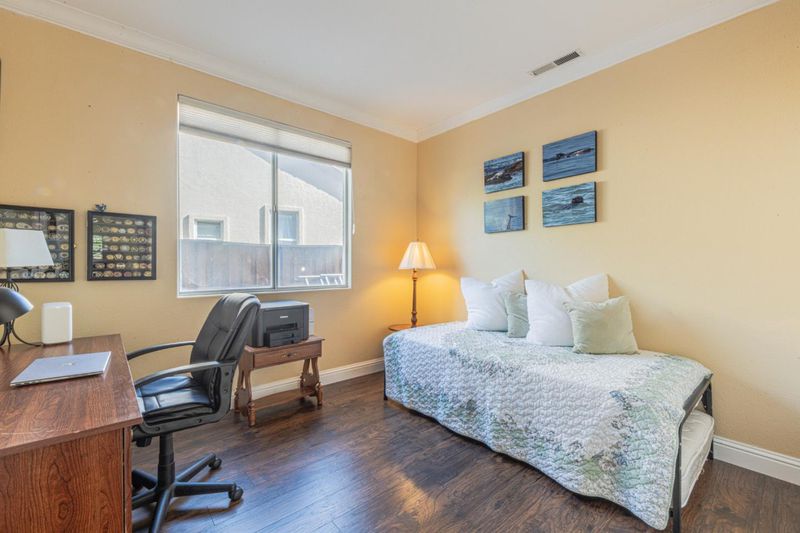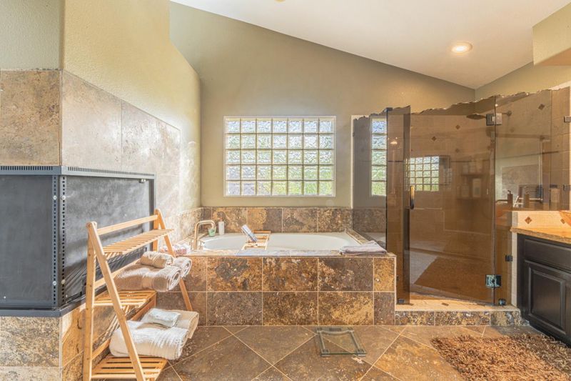 Welcome to this beautifully updated home in Las Palmas 2 with a 3-car garage! Located on one of the best streets in Fieldcrest, this home offers no through traffic and an easy walk to Buena Vista Middle School and the community pool. This is one of Las Palmas' favorite models that has not been available for a few years. Walking in, you will notice the travertine tile entryway working seamlessly with dark plank flooring. There is a full-sized downstairs guest suite attached to a private bath. The open-concept kitchen is a chefs dream, complete with an island cooktop and abundant counter space. The kitchen opens to a spacious family room with a cozy fireplace, ideal for games or movies. Enjoy a formal dining area perfect for entertaining, complemented by a bright and expansive living room with great natural light. Walk upstairs to the enormous primary suite that stretches the entire width of the house. The primary suite offers ample space for a large bedroom set and features a private fireplace. The upgraded primary bath offers a spa-like feel, complemented by a spacious walk-in closet! Down the hall, there are 2 more bedrooms and another large suite with a private bath. The spacious backyard is beautifully landscaped and includes a built-in barbecue area, perfect for summer!