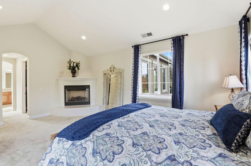Perfectly positioned in the prestigious Alicante neighborhood of north Morgan Hill, this executive residence offers timeless design, exceptional scale, and resort-style living. Set on an expansive 17,459 sq. ft. lot, the home features a spacious floorplan of over 3,800 sq. ft. designed for both refined entertaining and everyday comfort. Soaring ceilings and warm hardwood floors create an inviting, light-filled atmosphere throughout. A private den with a cozy fireplace provides a quiet retreat, while a petite wine cellar adds a touch of sophistication. The chef-inspired kitchen is beautifully appointed with solid wood cabinetry, tile backsplash, granite countertops, and stainless steel appliances.. Step outside to a lavish, resort-style backyard offering exceptional privacy and ambiance. Enjoy a sparkling pool, stone patios with three separate gathering areas, a stone-clad BBQ bar, and a custom pergola, all enhanced by thoughtfully designed LED lighting that creates a stunning setting day or night. all complemented by an owned solar power system for energy efficiency and long-term value. This remarkable Alicante home blends luxury, space, and privacy in one of Morgan Hills most sought-after communities a rare opportunity to enjoy upscale living at its finest.