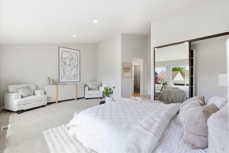 This rare residence is beautifully positioned to capture panoramic bay views, where stunning sunrises create a serene and inspiring backdrop every day. The home features an airy high-ceiling design that enhances the sense of space and light throughout the living areas. The expansive master bedroom offers a private retreat with generous proportions and a peaceful atmosphere, perfectly complementing the homes thoughtful layout. With four well-designed bedrooms, the floor plan provides exceptional flexibility for guests, a home office, or multigenerational living. There is also a downstairs office that can be easily converted into a fifth bedroom if needed. Ideally located, the property offers unmatched convenience just minutes from major Peninsula employers, transportation routes, and everyday essentials. Residents also enjoy nearby lifestyle amenities including the Bay Club Athletic Center, Nob Hill grocery store, and the scenic Bay Trail. Zoned for highly regarded schools including Sandpiper Elementary, Ralston Intermediate, and Carlmont High School, this home combines panoramic views, airy architectural design, spacious living, commuter-friendly access, and excellent educational opportunities. An outstanding place to call home.
