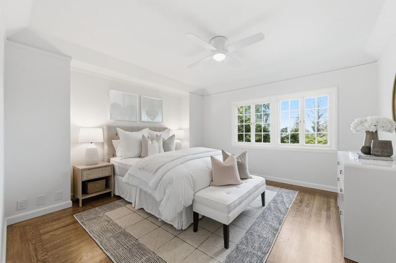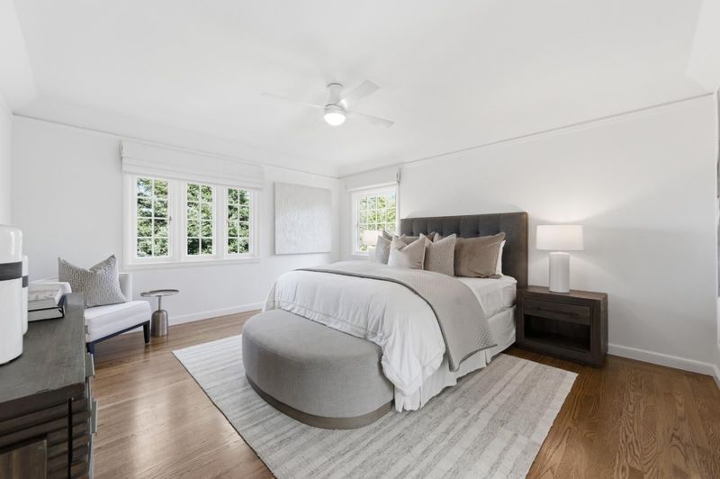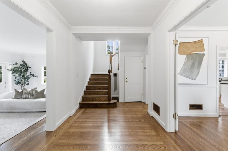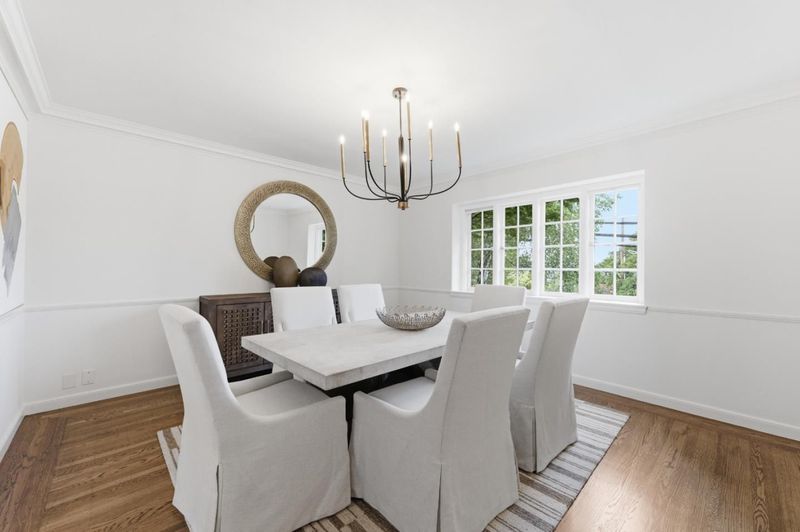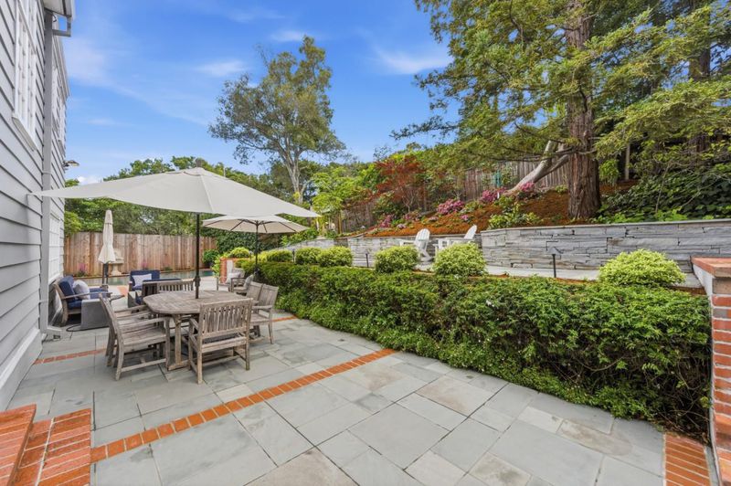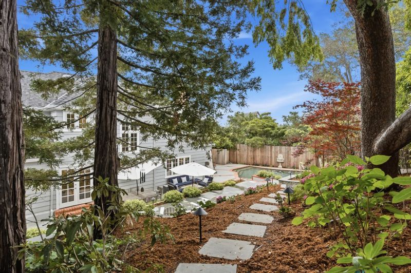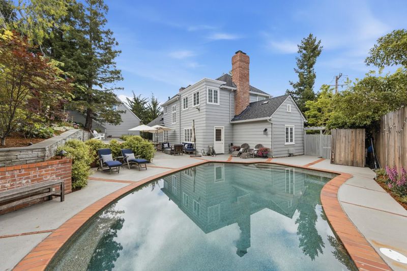 Built in 1936, this elegant residence reflects a rich architectural heritage paired with thoughtful updates for modern living. Set on a 13,234 SF lot, the home offers approximately 2,960 SF of living space with a traditional yet functional layout designed for both everyday comfort and gracious entertaining. The kitchen serves as the heart of the home, featuring top-tier appliances, custom cabinetry, and a sunny dining area. The central floor plan flows effortlessly into an oversized living room with fireplace and views of the rear grounds. Upstairs, the spacious primary suite offers a peaceful retreat with a walk-in closet, remodeled bath, and an adjoining office/dressing room. Additionally, there is a dedicated office with a fireplace and wetbar provides the ultimate space for working from home. The grounds are equally compelling private, beautifully landscaped with mature plantings, a sparkling pool, and newly updated bluestone patios designed for private al fresco dining and outdoor gatherings. A detached bonus space above the garage provides flexibility for a studio, gym, or private office. Ideally located near key commute routes, as well as Burlingame's vibrant shopping and dining destinations, this home offers a rare blend of timeless design, privacy, and livability.