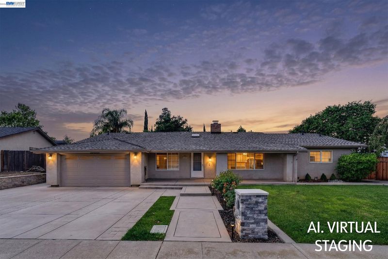 Welcome to 1147 Lomitas Ave, a sprawling 3,085 sq. ft. rancher in South Livermore. This rare 5-bedroom, 3-bathroom home is perfect for multi-generational living. The interior impresses with vaulted ceilings and a grand central fireplace anchoring the formal spaces. At the core is a massive chef’s kitchen featuring an oversized island, granite countertops, built-in double ovens looking out over the family room. In-law suite with private entry offers many options for various uses. Retreat to the spacious bedrooms, all featuring ceiling fans and mirrored closets. The primary suite is a true sanctuary, boasting a trendy barn door leading to a luxurious en-suite bath with a deep soaking tub and a glass-enclosed shower with pebble flooring. Convenience is key with a dedicated laundry room equipped with washer & dryer included, extensive cabinetry and tile counters. Step outside to a private backyard oasis featuring a large concrete patio, lush lawn, and tiered landscaping with stone retaining walls. The property includes a generous storage shed with sliding barn doors and a gated side-access area, perfect for potential RV or boat parking. An extra-wide driveway and modern stone accents complete the curb appeal. Situated near top-rated schools and world-class wineries, this residence offers the ultimate blend of space and luxury.