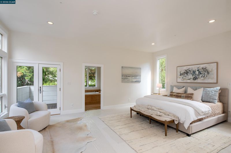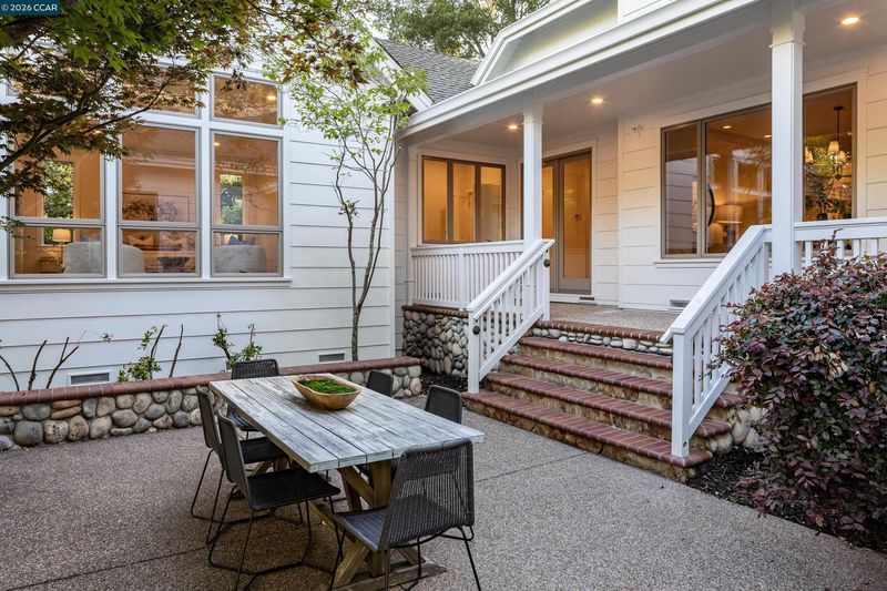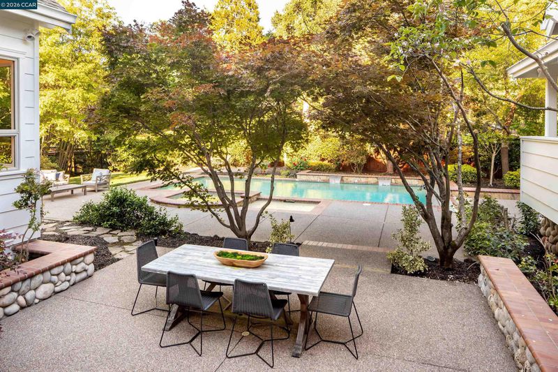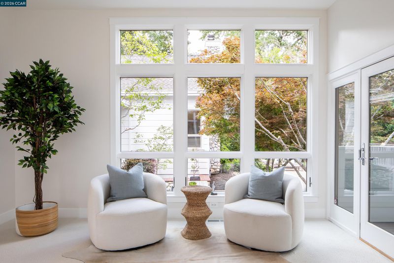 This distinctive home rests on a .67-acre lot in the heart of Upper Happy Valley. Entertain guests before dinner in the spacious living room (with a wood-burning fireplace) just off the grand entry foyer, or in the 399-sq-ft family room (under a 14-ft ceiling, with another wood fireplace and garden views on 3 sides) just down the hall. Newly refinished Tasmanian oak hardwoods link the living areas. The kitchen features a Jerusalem limestone island and counters, a Viking range, and a breakfast nook. Ample cabinetry and a walk-in pantry supply ample storage space. The principal suite and another bedroom are downstairs, each with garden views and a bathroom. The principal suite offers a spacious walk-in closet with built-in shelving and hanging space. The en-suite bath features dual sinks, a spa tub, and a large walk-in shower. Three other bedrooms and 2 bathrooms are upstairs, along with a 288-sq-ft media/play room, and closet space galore. Work from home is a pleasure in the office just off the entry foyer. The back yard is surrounded by redwoods, a striking Marina strawberry tree, and manicured gardens. It offers a 41-foot swimming pool, ample deck space, a hot tub, and a grassy play area. A driveway and 3-car garage provide ample parking.