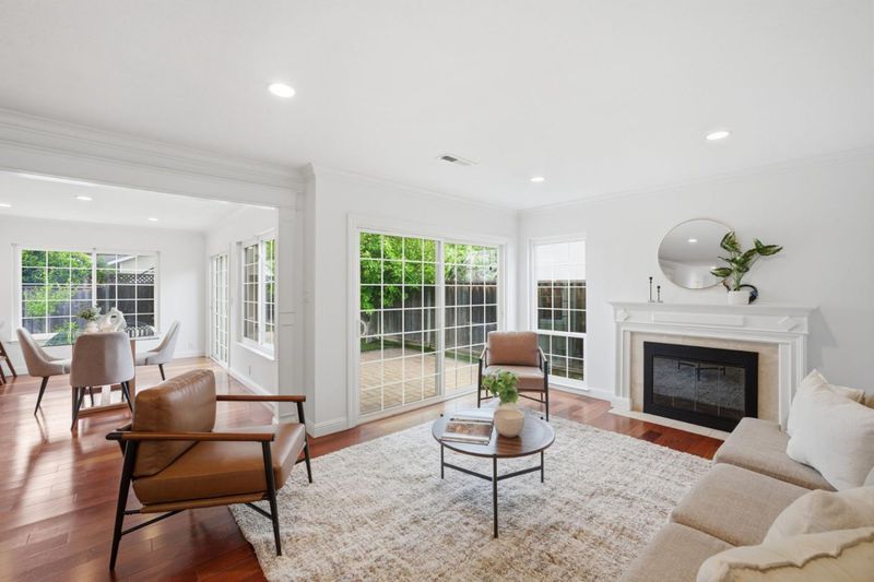Perched on a premium corner lot with scenic mountain views, this beautifully maintained home offers the perfect blend of comfort, style, and serenity. Surrounded by windows that flood the space with natural light, the open-concept floor plan showcases rich cherry hardwood floors, creating an inviting ambiance throughout. The kitchen features ample cabinetry, generous counter space, and a functional layout. The spacious living area is anchored by a cozy fireplace with a stunning mantel. Four bedrooms, including a private primary suite with a walk-in closet and en-suite bath, provide a peaceful retreat. Step into your own private backyard orchard with mature persimmon, apple, lemon, and plum trees. The backyard is thoughtfully paved for low maintenance, offering a clean, functional space perfect for relaxing or entertaining with ease. This rare offering combines panoramic views, a prime location, and true move-in ready living. Ideally situated near top-rated schools, parks, scenic trails, popular restaurants, and with convenient access to major highways, this home offers both tranquility and everyday convenience. Opportunities like this dont come around often. Schedule your private showing today and experience everything this exceptional home has to offer.