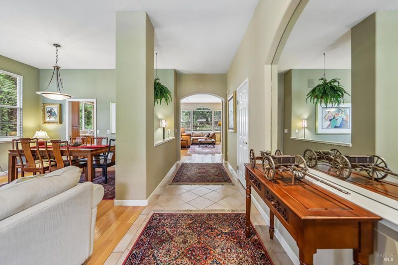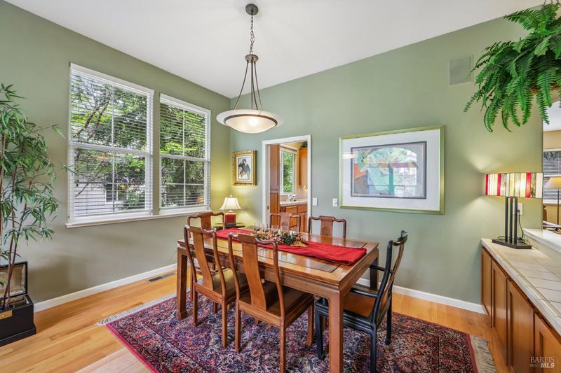 This Northeast Santa Rosa home sits on a small court in a beautifully established setting, with a sense of privacy that is hard to find so close to Rincon Valley conveniences. With approximately 2,055 square feet on a 9,162+/- square foot lot, the property features attractive landscaping, strong curb appeal, mature trees, and a peaceful sense of separation from the surrounding neighborhood. The location feels serene and tucked away, yet remains close to Rincon Valley amenities, Oliver's Market, and the conveniences that make daily living easy. Inside, the home is generously scaled and thoughtfully designed for both comfortable living and easy entertaining. Ten-foot ceilings create an airy, open feel throughout, while 3/4-inch oak flooring adds warmth, character, and a sense of quality. The layout offers an inviting flow between the main living spaces, making it well suited for gatherings as well as quieter everyday use. Three fireplaces add depth and atmosphere, located in the living room, family room, and primary suite. The outdoor setting is a standout feature. An elevated view deck overlooks a forested backdrop, and the backyard feels notably private, with beautiful trees, redwoods, thoughtful landscaping, and lighting that extends the enjoyment of the patio and yard into the evening. The setting offers a sense of calm that is hard to duplicate. Practical features further strengthen the offering, including new high-efficiency air conditioning, a whole-house vacuum system, hot water dispenser at the kitchen sink, and a LeafFilter gutter protection system. The garage is especially well equipped, with extensive wood cabinetry, a workbench, cabinets, drawers, and abundant storage. Full property reports are on file, offering buyers a higher level of transparency and confidence as they evaluate the property. Homes with this kind of privacy, outdoor setting, and close-in convenience are best appreciated in person.