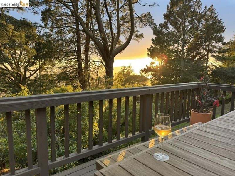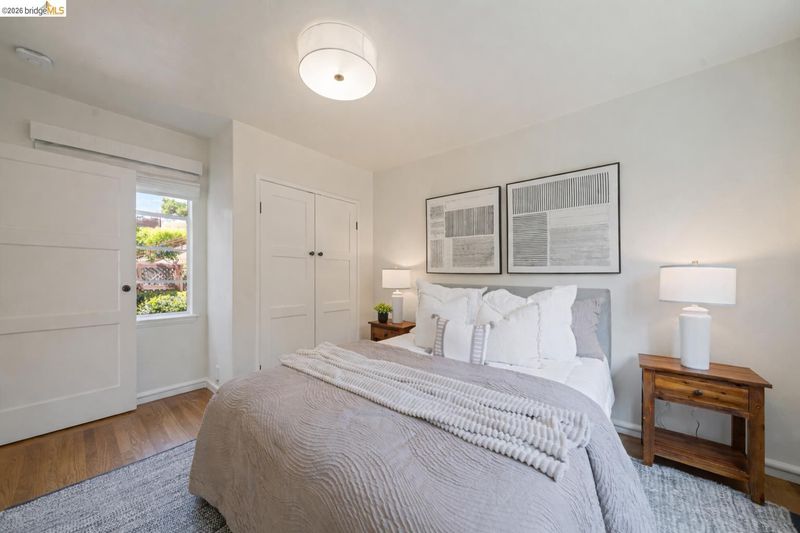 Tucked into the historic Cragmont District, 1170 Sterling Ave is an enchanting 1938 storybook Tudor that perfectly captures the "Simple Home" philosophy of the Berkeley Hills where homes were designed to harmonize with the natural beauty of the hills. Welcoming you home, a charming private courtyard with patio offers a peaceful retreat framed by lush greenery and classic brickwork. This 4-bed, 3-bath home blends timeless architectural charm with modern comfort across 2,490 square feet. Inside, a graceful curved staircase, exposed beams, and arched entryways create a warm, inviting atmosphere. The heart of the home is a beautifully updated kitchen that flows into a light filled sunroom and an expansive deck, ideal for morning coffee or evening sunsets over the Golden Gate Bridge. The living room features vaulted ceilings and a classic fireplace providing the perfect setting for both peaceful nights and lively gatherings. One bedroom and an updated bathroom complete the main floor. Upstairs, the serene primary suite with sweeping Bay views is complemented by an additional bright bedroom with 220 square foot bonus loft, ideal for a nursery or office. Downstairs, a permitted one bedroom JADU with an office space, dining area, separate entrance and a 395 square foot bonus room provides flexibility for guests or rental income. Outside, enjoy a peaceful backyard with a flourishing loquat tree and direct access to Stevenson Path, connecting you to Tilden Park and the Rose Garden. This is more than a home; it’s a lifestyle rooted in nature and community. Home Energy Score 4. Transparent Price.