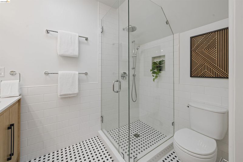 - Shower Over Tub, Solid Surface, Stall Shower, Tile, Updated Baths, Dual Flush Toilet