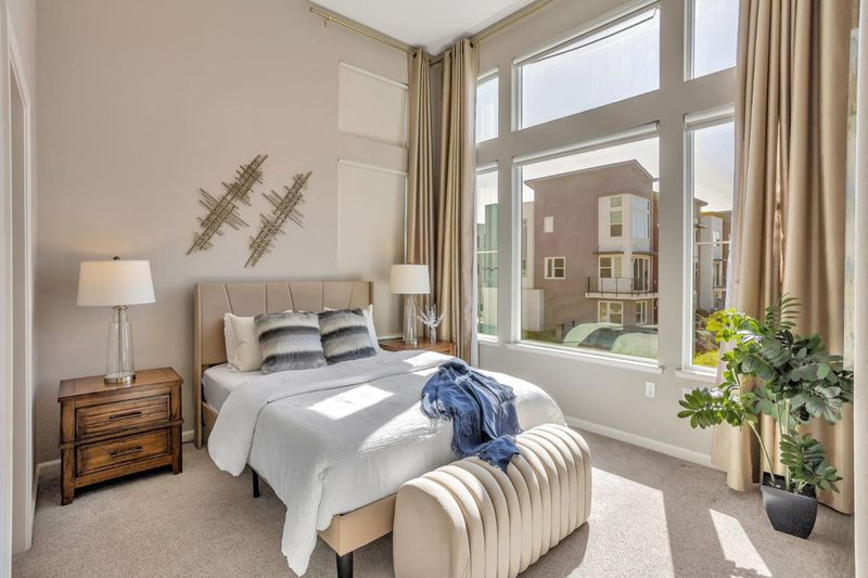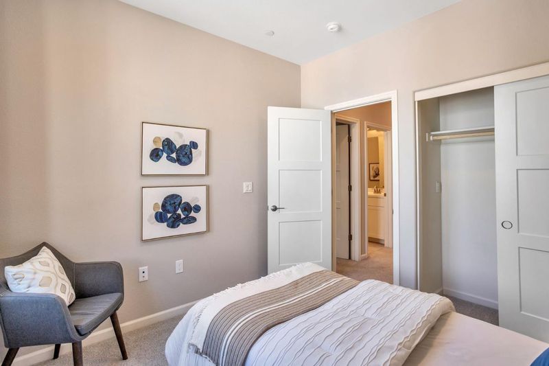 Step into this beautifully designed end-unit Townhome-style condo (NO RESIDENT ON TOP/BOTTOM, only one wall is shared), built in 2020 & offering 4 spacious bedrooms (1 on groundfloor) 3.5 baths across approx 2,024 SQFT. With soaring ceilings & a bright, open layout, the home feels both modern & welcoming, ideal for gatherings or quiet evenings in. AS A CORNER UNIT, it enjoys extra natural light & added privacy, creating a calm & inviting atmosphere. Garage entry to home conveniently located on the EAST-FACING side. Inside, you'll find stylish upgrades ($90K+) like custom paint & water softener system that elevate the homes character. Smart thermostats enhance comfort while helping manage energy use. The home also features a water softener system & a reverse osmosis water filter at the kitchen sink, offering added convenience & improved water quality for everyday living. The home is part of a vibrant, well-maintained community with access to modern amenities & a nearby park perfect for outdoor enjoyment. Located minutes from major highways & expressways, close to the best of San Jose's shopping, dining, & entertainment. Contemporary move-in-ready home in a great location. Gorgeous Front Patio for Summer BBQ gathering and wrap around balcony on second floor.