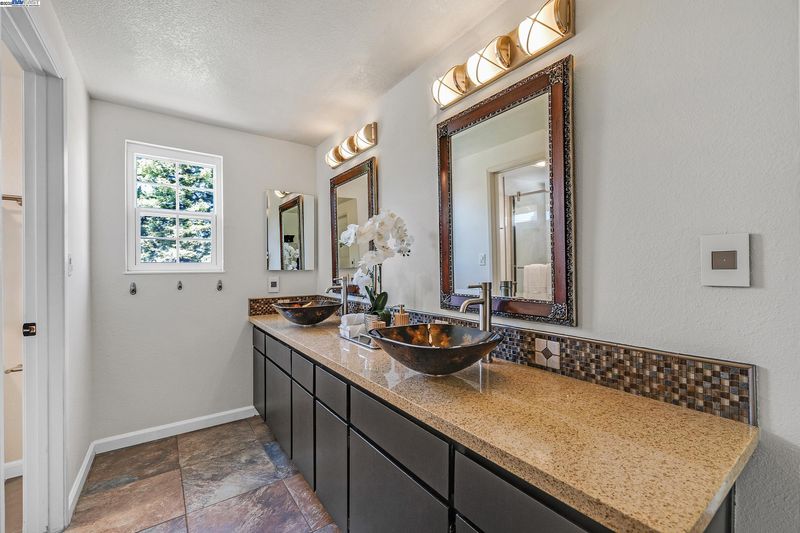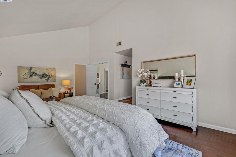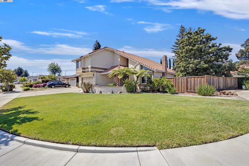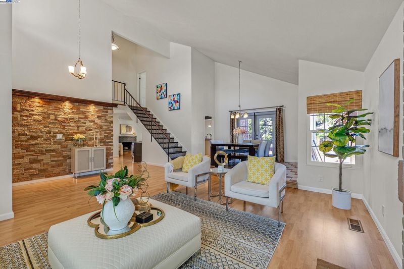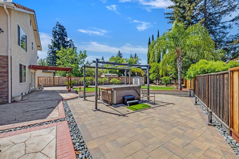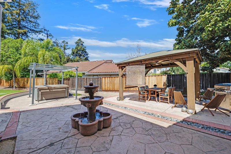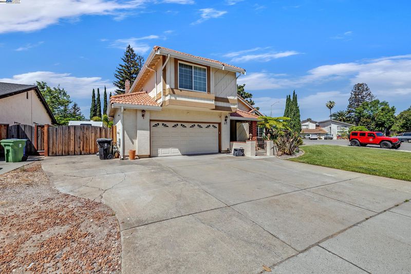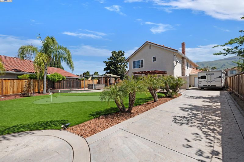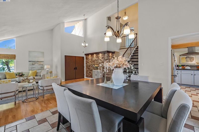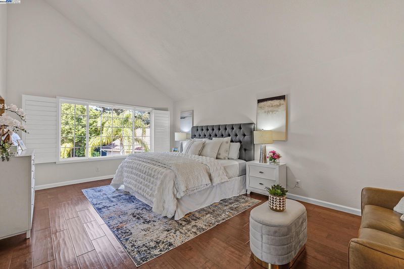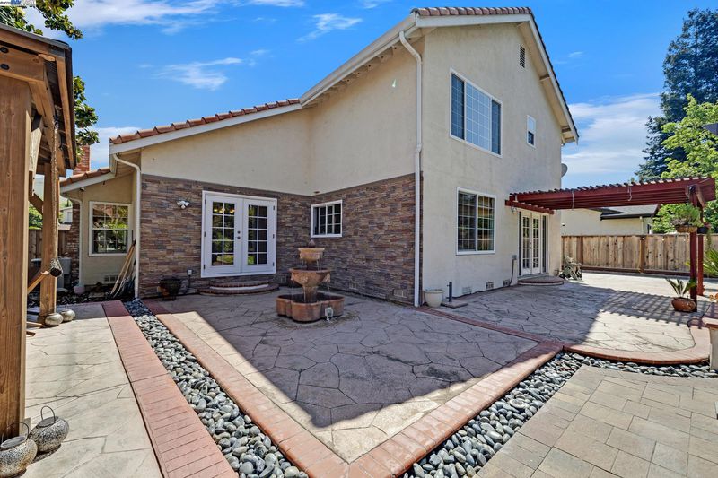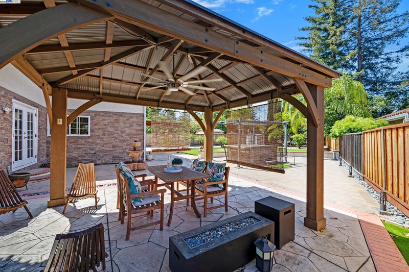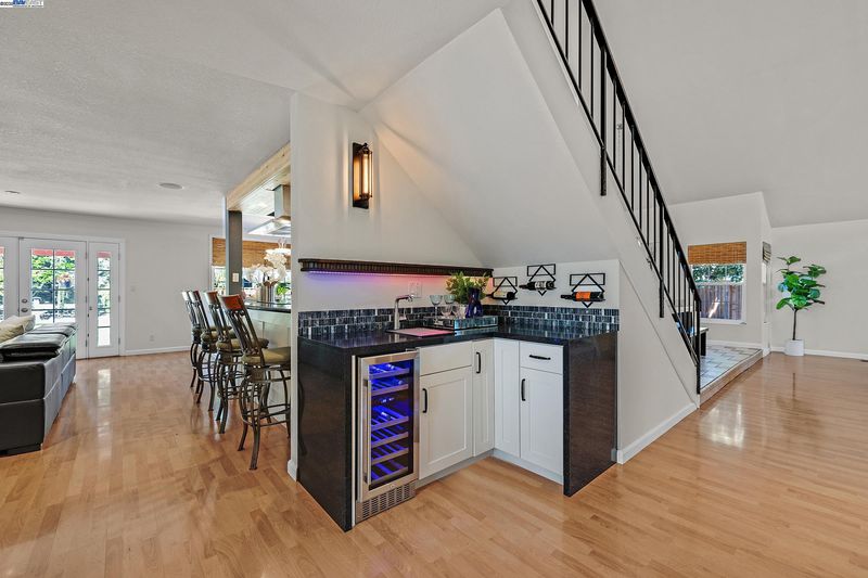 Located on a 10,000+ sq ft lot with RV side access, this stunning east facing 5 bedroom, 3 bath ( plus a private retreat room within the primary suite) home is freshly painted and modernly upgraded. 1 bedroom & 1 full bath downstairs perfect for multigenerational living. Soaring ceilings flood the living room with natural light. The upgraded kitchen boasts granite counters & backsplash, soft-close cabinets, and a custom wet bar with Hue lighting & wine fridge. French doors lead from the family room to a resort-style backyard: palm trees, gazebo with fan, fountains, 6-person LED spa, and mini-golf inspired landscape. Potential for ADU. Upgrades: Simonton soundproof windows (upstairs), brand new primary bath with mosaic/porcelain tile, hand-scraped wood floors, 8-channel security system with cloud access, smart thermostat, garage door opener with backup battery & app control, and keyless entry. Near Weibel Elementary, BART, parks, shopping, and easy freeway access.