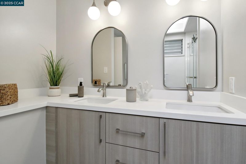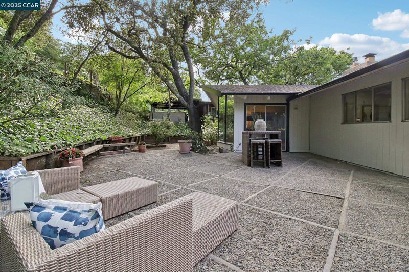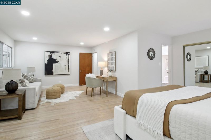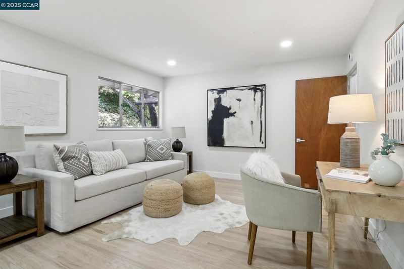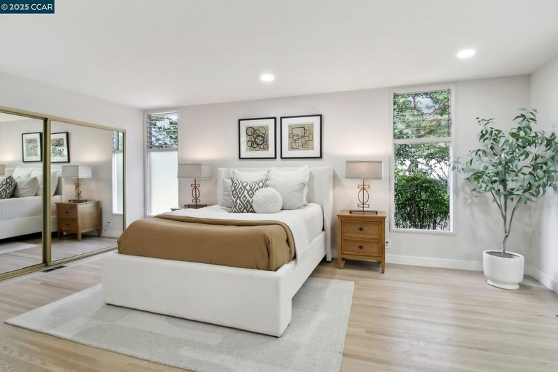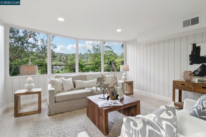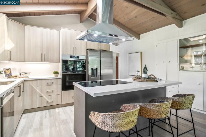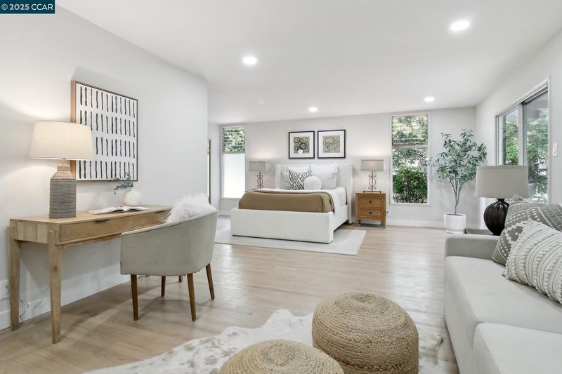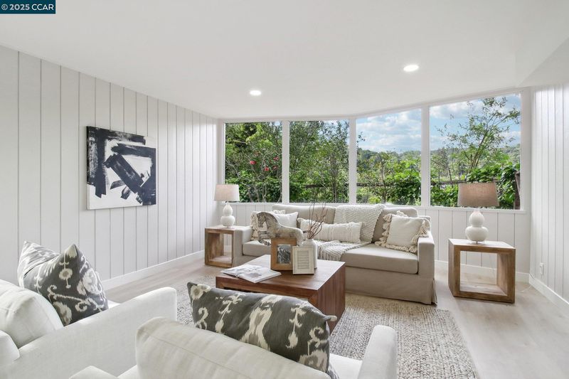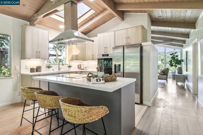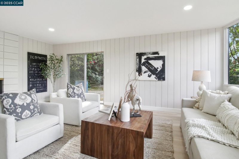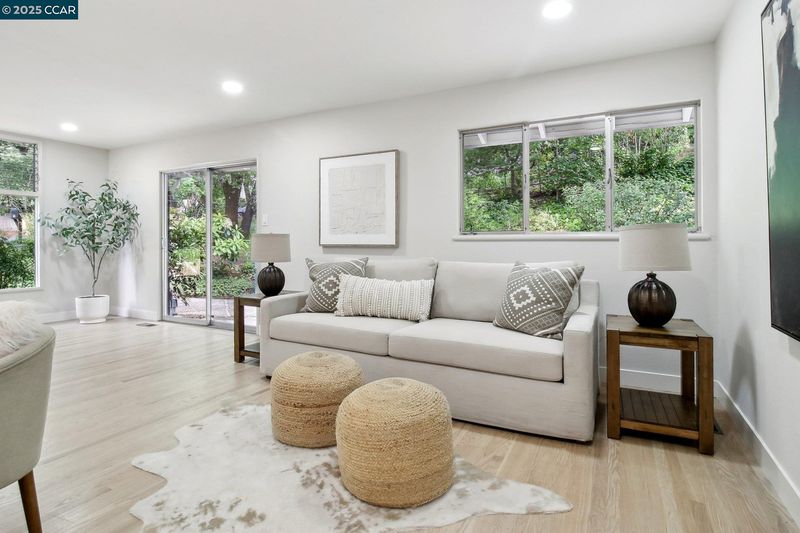 This stunning 3-bedroom, 3-bath home offers 2,486± sq ft of beautifully renovated living space on a private 0.28-acre lot. The main level showcases a dramatic formal living room with a wall of floor-to-ceiling glass, sleek gas fireplace, and seamless flow into a brand-new chef’s kitchen featuring European cabinetry, quartz counters, new stainless steel appliances, and an induction range. The large dining rm is encased in more glass with yard access. The spacious primary suite is adorned with windows, seating area, and a spa-like bath with dual sinks and an oversized walk-in shower and completing the main level. Downstairs, discover a versatile and convenient kitchenette, cozy family room with fireplace, large bedroom, and full bath — ideal for multigenerational living, an au pair suite, or potential attached ADU/rental opportunity. Mature backyard landscape with coveted flat space and corner privacy. Every detail has been thoughtfully updated, including new kitchen, bathrooms, flooring, cabinetry, counters, lighting, and interior/exterior paint. Great location offering ultimate privacy while being close to town, schools, and commute routes.