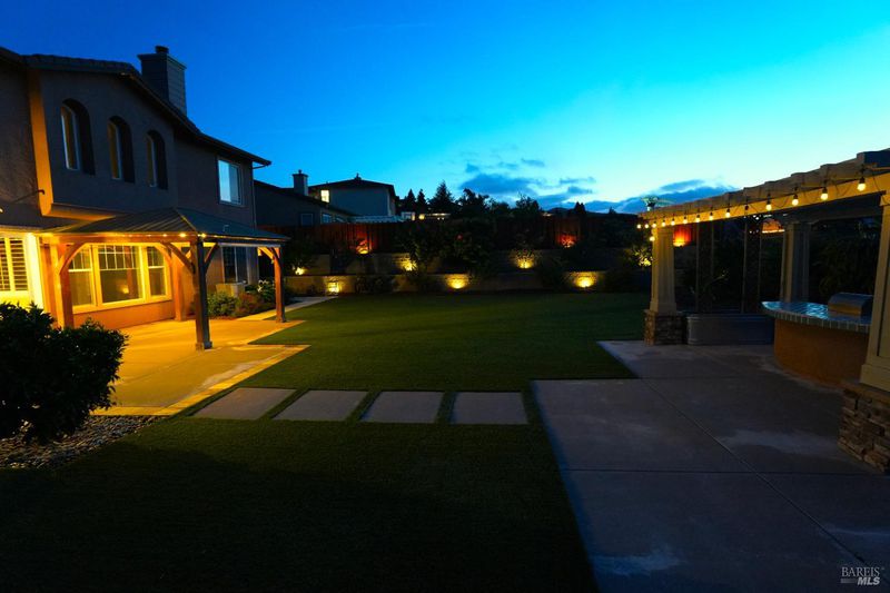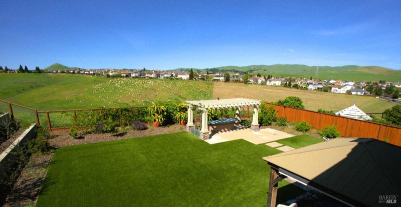 On a premier lot in the Waters End neighborhood of Benicia, 378 Piercy Drive features beautiful spaces inside and out, scenic hillside views, and an improved floor plan. The premium lot enhances curb appeal and possibilities, with an extra large front driveway, a spacious and level backyard with privacy and views. Outdoor features include artificial turf, a pergola and outdoor kitchen with gas line, a tiered side yard with newer retaining walls hosting an exotic array of fruit trees for year-round enjoyment. A highly desirable lower level bedroom/bathroom addition en suite not typically found in this floor plan with a walk-in closet, built-ins and privacy all on its own (built/permitted 2022). A formal living room with beamed ceilings and a formal dining room with custom built-ins add warmth and character. See the views from the kitchen, enjoy a large island with seating, KitchenAid appliances, a six-burner gas range with hood, walk-in pantry, a separate bar area, French doors to the yard, and a great room adjacent to enjoy cozy evenings by the fireplace. The upstairs primary suite caters to relaxation with a fireplace, privacy, and space. Remodeled primary bath (2024). Practical home upgrades include dual pane windows, water heater (2020), 3-car garage, newer redwood fencing, tile roof and owned solar. A walking trail through the open space behind the house leads to the community park and Lake Herman recreation area. Located in charming Benicia, where residents enjoy highly-rated schools, a vibrant downtown, waterfront recreation, and year-round community events.