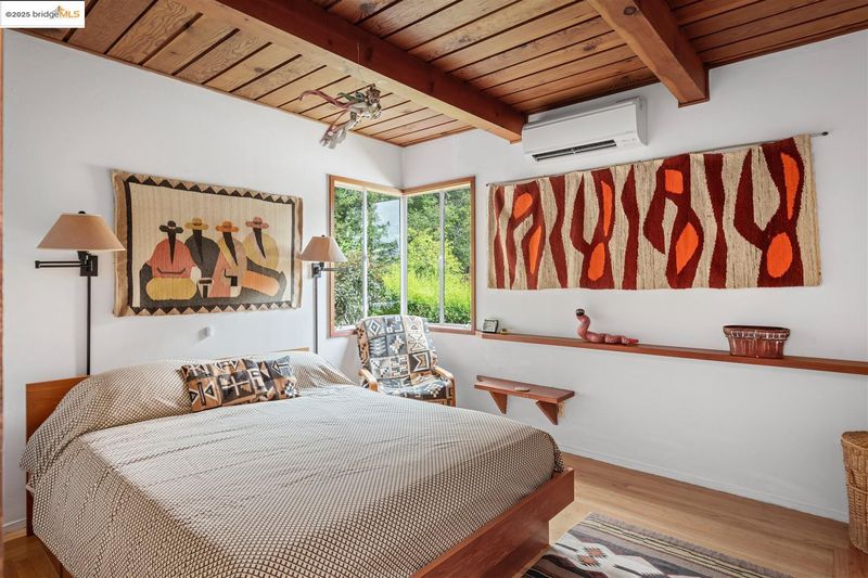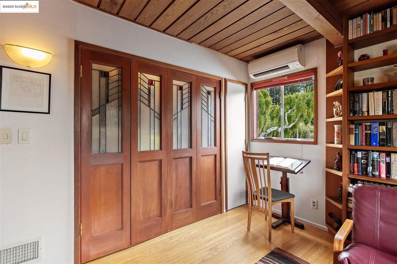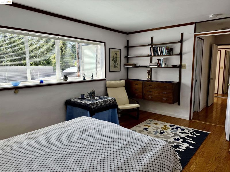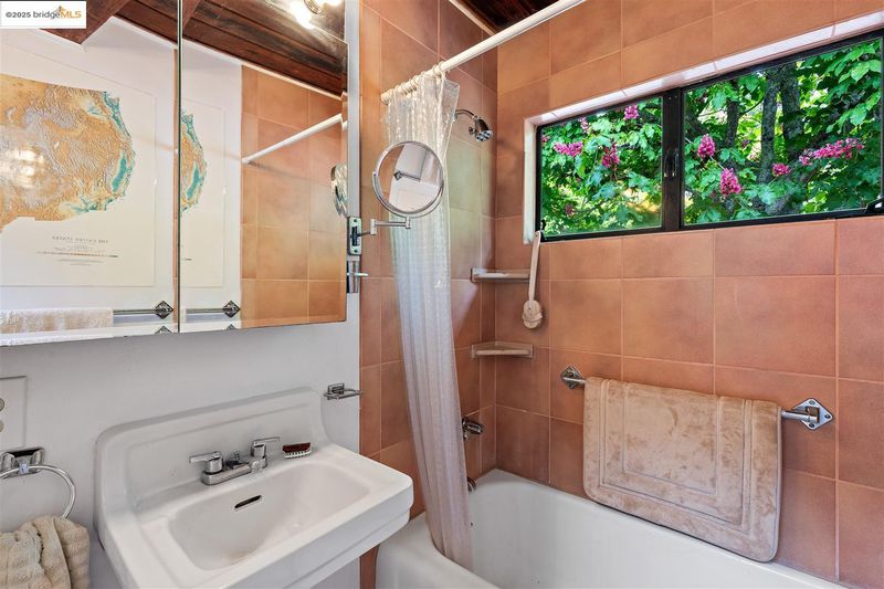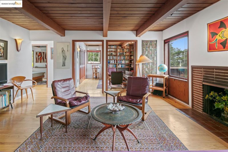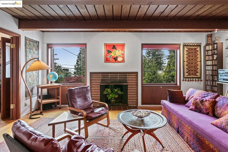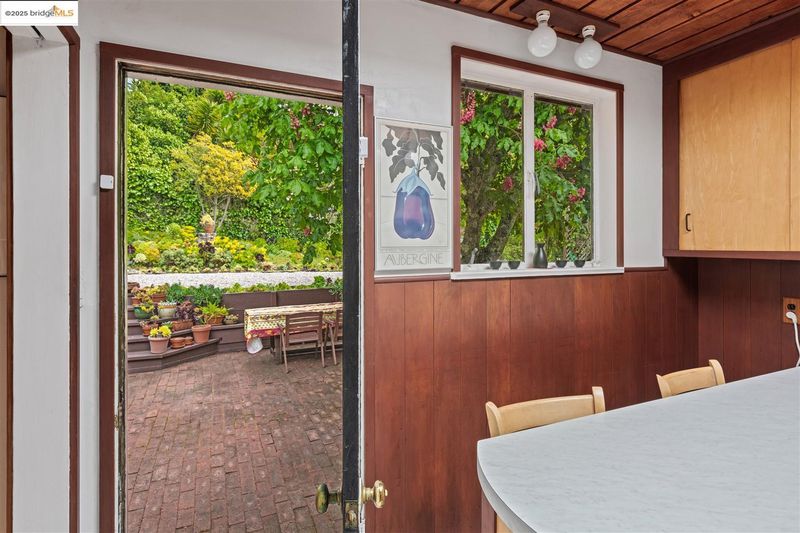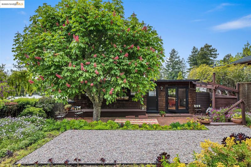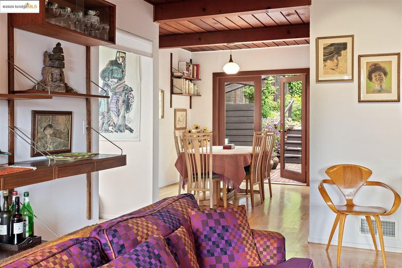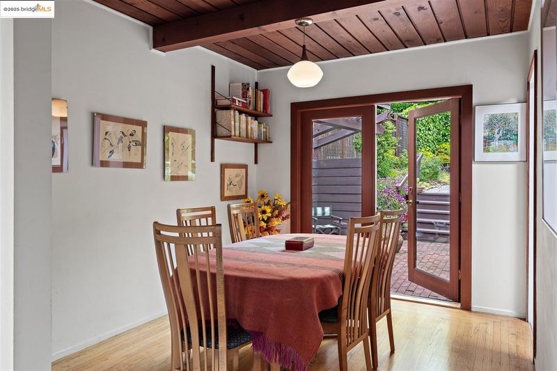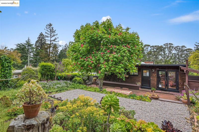 A true Mid-century modern gem, built in 1952 and meticulously maintained by one owner since 1964. This home effortlessly combines form and function with clean lines and a seamless connection to nature. The warmth of the brown shingle exterior continues inside, where the main floor features exposed wood beam ceilings, oak floors, and expansive windows that fill the space with light and provide a green vista framing a peek-a-boo view of the San Francisco skyline. The kitchen was inspired by Julia Child’s kitchen, with unfussy cabinets and pegboard! Both the kitchen and the dining room open to a marvelous brick patio and a large sun-filled level garden. The chestnut tree is in full bloom this time of year. A bedroom, bath, and study (formerly a bedroom, could be again) complete this level. The entry level has a primary bedroom, bath, and laundry, with multiple storage closets. At the street level, an expansion was completed in 2019, creating a great home office or rentable unit* (last rented for $1300/month), complete with bath, kitchenette, and French doors to the front patio.* *Buyer to investigate.