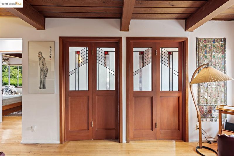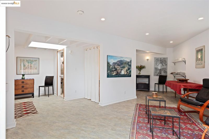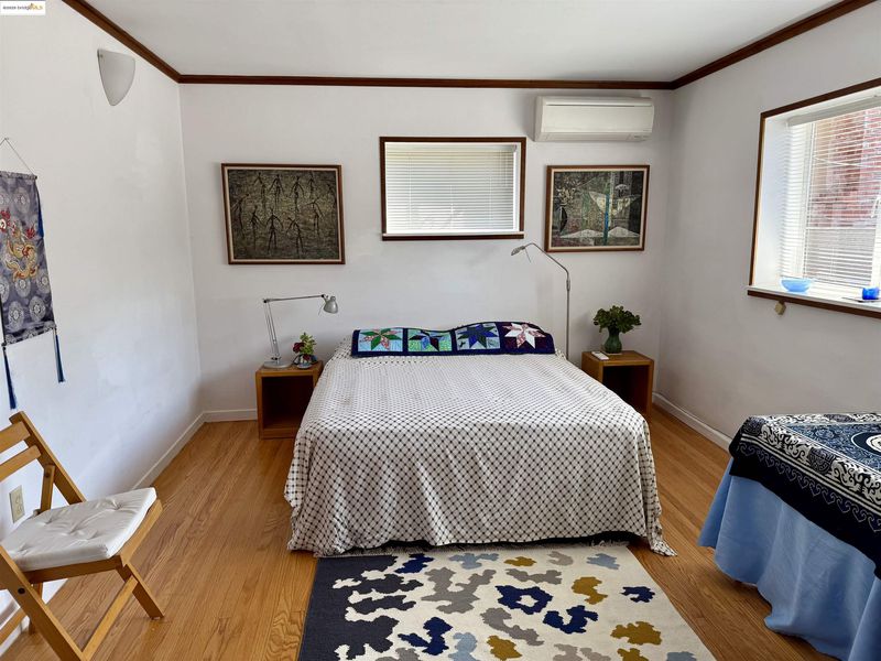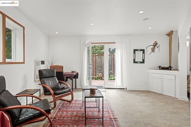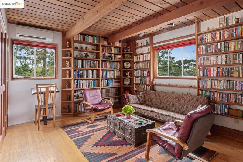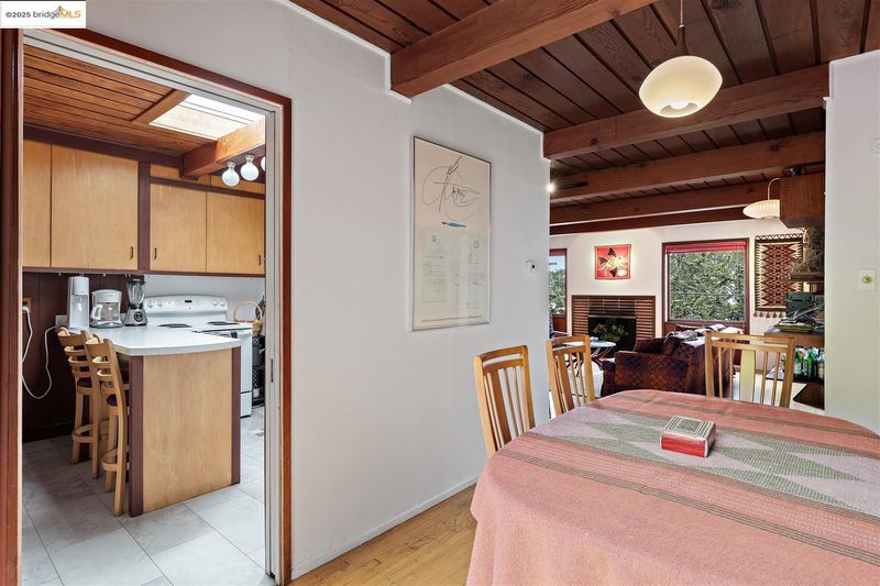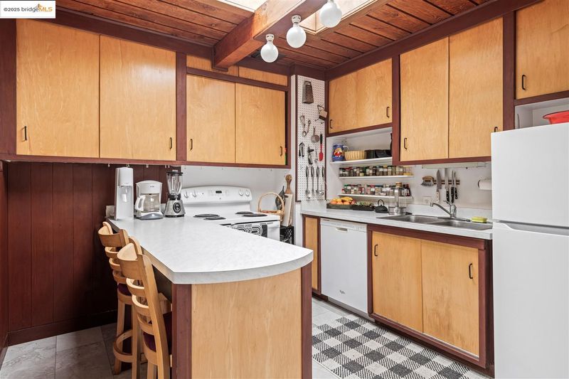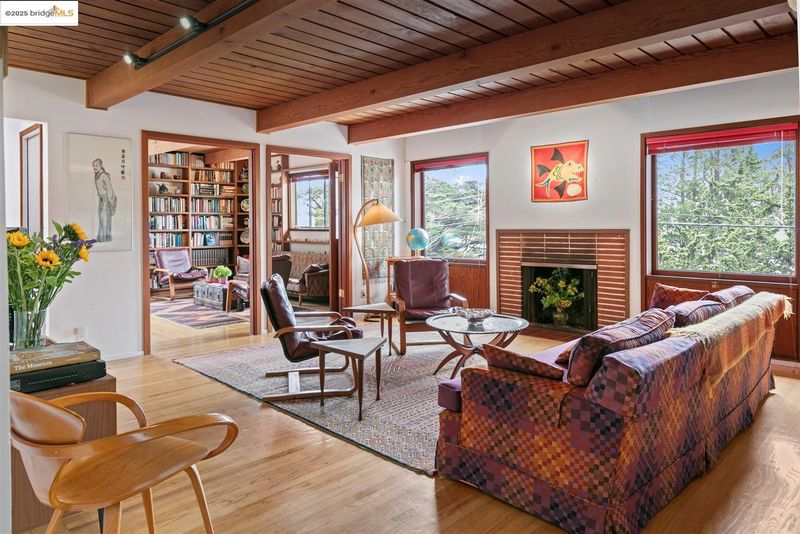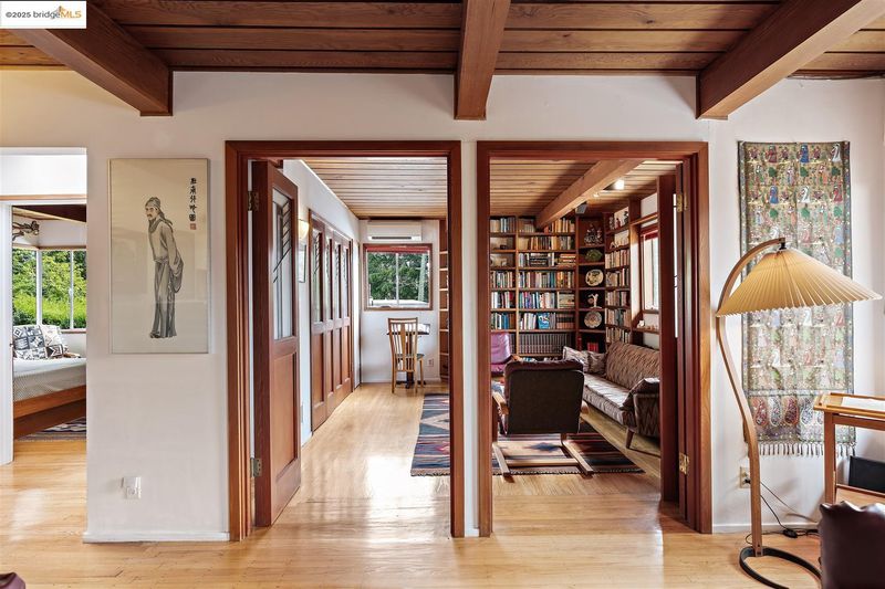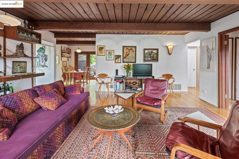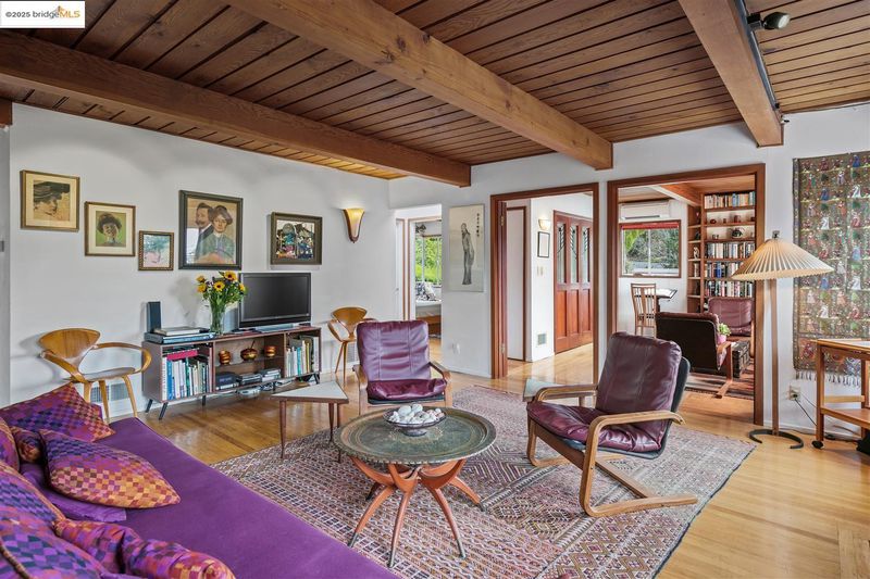 A true Mid-century modern gem, built in 1952 and meticulously maintained by one owner since 1964. This home effortlessly combines form and function with clean lines and a seamless connection to nature. The warmth of the brown shingle exterior continues inside, where the main floor features exposed wood beam ceilings, oak floors, and expansive windows that fill the space with light and provide a green vista framing a peek-a-boo view of the San Francisco skyline. The kitchen was inspired by Julia Child’s kitchen, with unfussy cabinets and pegboard! Both the kitchen and the dining room open to a marvelous brick patio and a large sun-filled level garden. The chestnut tree is in full bloom this time of year. A bedroom, bath, and study (formerly a bedroom, could be again) complete this level. The entry level has a primary bedroom, bath, and laundry, with multiple storage closets. At the street level, an expansion was completed in 2019, creating a great home office or rentable unit* (last rented for $1300/month), complete with bath, kitchenette, and French doors to the front patio.* *Buyer to investigate.