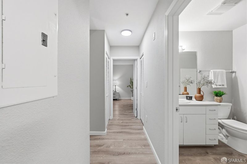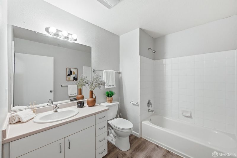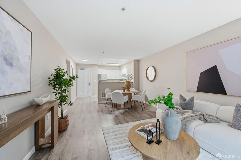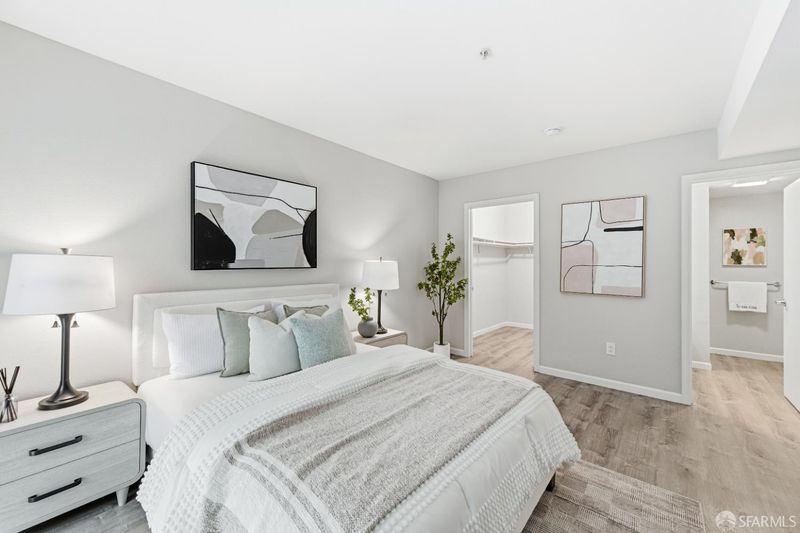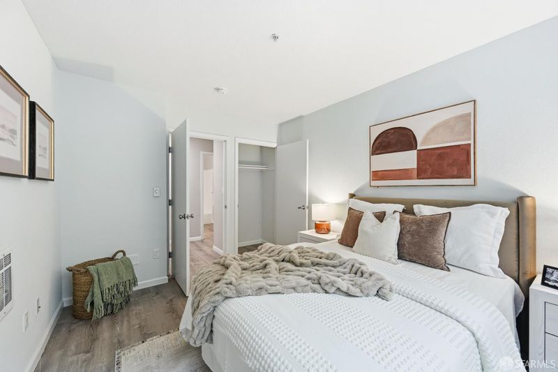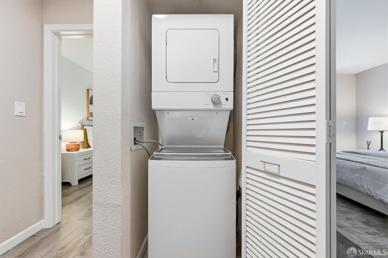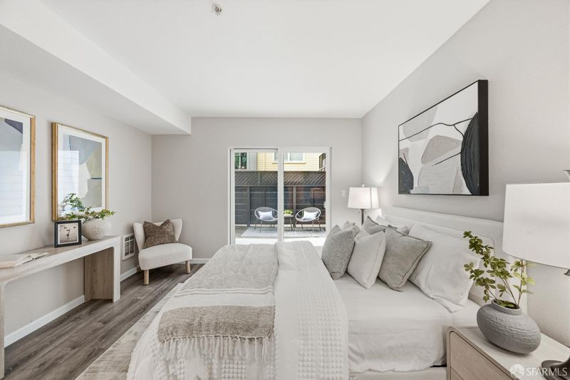 Enjoy convenient city living at an affordable price. This bright and well-maintained 2-bedroom, 2-bath home features an open-concept layout, with the living room opening to a private patio. The modern kitchen offers generous cabinet space and brand new appliances! There is also an in-unit washer and dryer in a dedicated laundry closet. The spacious primary suite includes an en-suite bath and direct patio access, while the second bedroom is well-sized and served by a nearby full bath. The home also includes one assigned parking space in a secure garage with EV charging access. Located directly above a vibrant shopping center with H Mart, K-Town Food Court, Paris Baguette, Subway, Extreme Pizza, and 7 Leaves Cafe, and just a 5-minute walk to BART, multiple Muni lines, with easy access to Hwy 280, SFSU, and CCSF.
