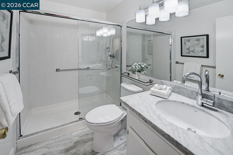 - Solid Surface, Stall Shower, Tile, Updated Baths