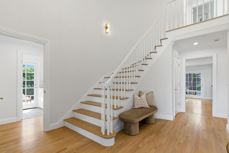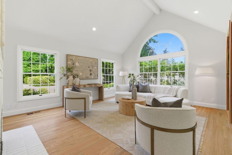 Tucked away just moments from the Village of Los Altos & highly regarded schools, this move-in ready home offers an inviting retreat with contemporary elegance & elevated comfort. The grand entry welcomes you with rich hardwood floors, graceful curved staircase, statement chandelier & skylights creating an airy sunlit ambiance. The open-concept kitchen features a custom copper hood above a spacious quartz island, abundant cabinetry, large cooktop, wall ovens and generous sink overlooking the lush, emerald-green backyard framed by mature trees, all opening to a bright & spacious family room. The main floor offers flexibility with a bedroom & full bath ideal for guests or home office. Formal living & dining areas with soaring ceilings and dramatic fireplace add scale & comfort, while interconnected patios extend the living experience outdoors. Upstairs, the primary suite is a private retreat with high ceilings, cozy gas fireplace & private balcony. The suite includes a walk-in closet, remodeled bath with designer finishes & soaking tub. Two additional bedrooms & full bath with double vanity complete the upper level. Thoughtful updates & effortless living in highly sought-after North Los Altos offer an exceptional opportunity in one of the areas most desirable neighborhoods.