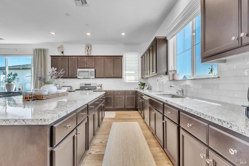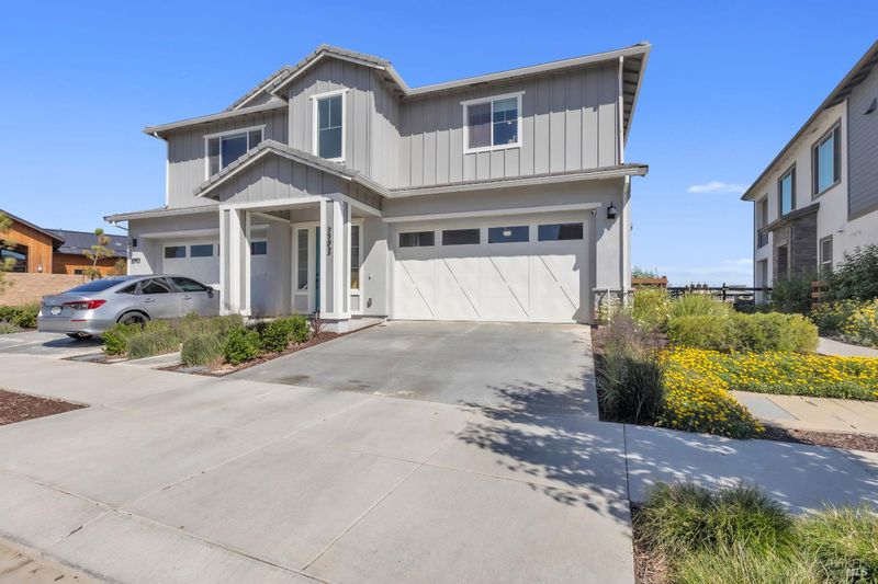 Set along the water in one of Fairfield's newer communities, this 2023-built home offers a refined blend of modern design, natural light, and uninterrupted lake views. With over 2,300 sq ft, this 3-bedroom, 2-bath home features a spacious open-concept layout where the kitchen, dining, and living areas connect effortlessly. The kitchen stands out with an oversized island, generous cabinetry, and a clean, contemporary finish designed for both everyday living and casual gatherings. Wide-plank flooring and expansive sliding glass doors create a bright, open feel while naturally drawing your attention to the lake beyond. Seller-owned solar adds to the home's overall efficiency. The primary bedroom is positioned to take in the water views, offering a spacious, comfortable retreat with a walk-in closet. The living space extends seamlessly to a covered deck overlooking the lake, complete with outdoor seating and a fire feature, creating an inviting setting for unwinding or entertaining without the maintenance of a traditional backyard. Located just moments from the community pool, clubhouse, and walking paths, this home offers convenient access to shopping, dining, and major commute routes. It is just minutes from Travis Air Force Base, with Napa Valley only a short drive away. Modern, low-maintenance, and set on the lake, this home offers both simplicity and presence.