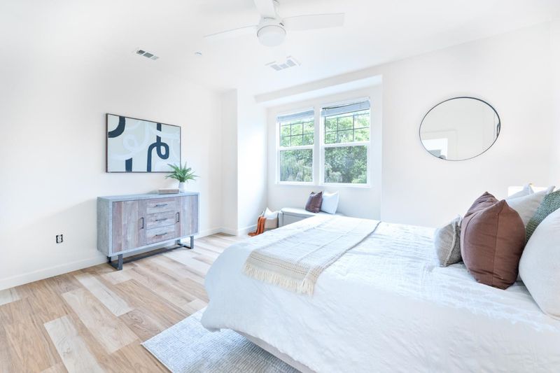 Discover modern elegance in this beautifully updated 3-bedroom, 3.5-bathroom, 1,793 sq. ft. townhome tucked away in desirable Willow Glen. Flooded with natural light, the open-concept living area features wide-plank floors, a cozy gas fireplace, and seamless flow into an updated gourmet kitchen boasting ample storage, quartz countertops, white shaker cabinetry, a designer tile backsplash, and premium stainless steel appliances. The versatile tri-level layout offers a luxurious top-floor primary suite with a walk-in closet and spa-like dual-vanity bath, alongside a highly coveted ground-floor junior suite ideal for a private home office or guest space. This home is complete with central A/C, convenient upper-level laundry, an adorable private front patio, and a rare attached 2-car side-by-side garage. Perfectly situated near River Glen Park and the vibrant shops and dining of Downtown Willow Glen, with effortless access to major freeways (87/85/280) and Silicon Valley's tech companies, this property effortlessly blends sophisticated design with ultimate convenience.