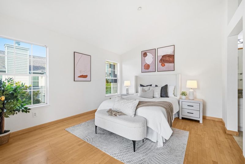 Welcome to this stunning end-unit townhome featuring 3 bedrooms and 2.5 bathrooms in a bright, inviting space. The living room boasts high ceilings, large windows, wood floors, a cozy fireplace, and access to a private balcony. A half bath is nearby for added convenience. A versatile loft can serve as a home office, dining area, or family room. The gourmet kitchen features granite countertops and backsplash, stainless steel appliances, and ample cabinetry, complemented by an adjacent dining area and family room. Upstairs, the primary ensuite includes a walk-in closet and a bathroom with granite countertops, a double vanity, and a shower over tub. Two additional bedrooms share a bathroom with a stall shower and a double vanity with granite countertops. An attached two-car garage includes a washer and dryer. Community amenities include a pool and hot tub. Conveniently located near shopping, restaurants, grocery stores, Challenger School, BART, San Jose International Airport, and Hwys 880, 680, and 101. Walking distance to H Mart, Sprouts, Costco, 99 Ranch, and Townsend Park. Do not miss this fantastic opportunity!