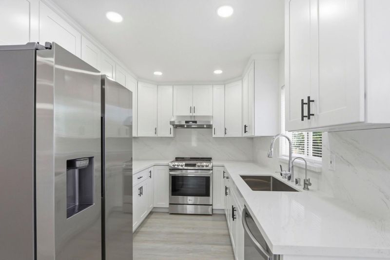 - 220 Volt Outlet, Cooktop - Electric, Countertop - Quartz, Dishwasher, Exhaust Fan, Garbage Disposal, Ice Maker, Oven - Self Cleaning, Oven Range, Pantry, Refrigerator