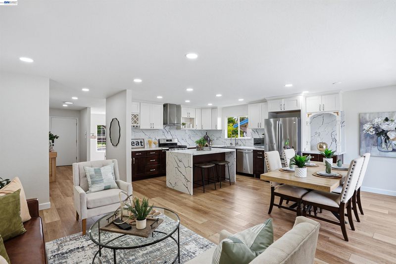Welcome to this beautifully updated North-facing home in the highly desirable Val Vista neighborhood of Pleasanton. Situated on a quiet court, 6738 Rancho Ct offers 4 bedrooms and 2 bathrooms, combining comfort, efficiency, and modern upgrades throughout. Inside, you’ll find updated flooring throughout the main living areas and new carpet in the bedrooms, creating a fresh, move-in-ready feel. The updated kitchen features modern finishes and improved functionality, opening to the family and dining spaces—ideal for both everyday living and entertaining. Both bathrooms have also been tastefully updated with a clean, contemporary design. This home is equipped with solar panels, along with a water softener system for added convenience. Major improvements include a new roof installed in 2023, offering peace of mind for years to come. Step outside to a low-maintenance backyard designed for easy living, complete with hardscaping and a gazebo—perfect for relaxing or hosting gatherings. Located in a well-established neighborhood close to parks, shopping, top-rated schools, and commuter routes, this home presents an exceptional opportunity to own in one of Pleasanton’s most sought-after communities.