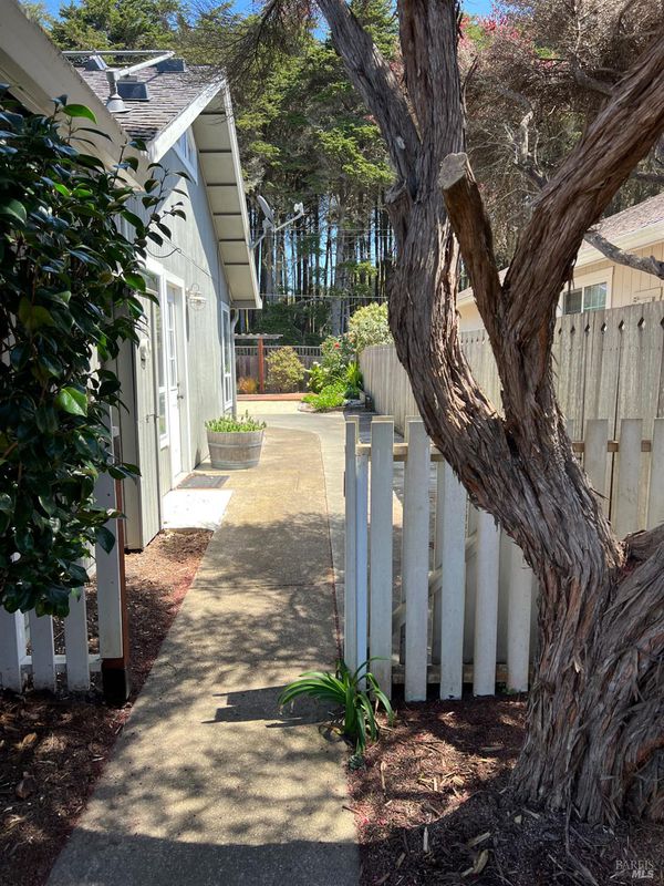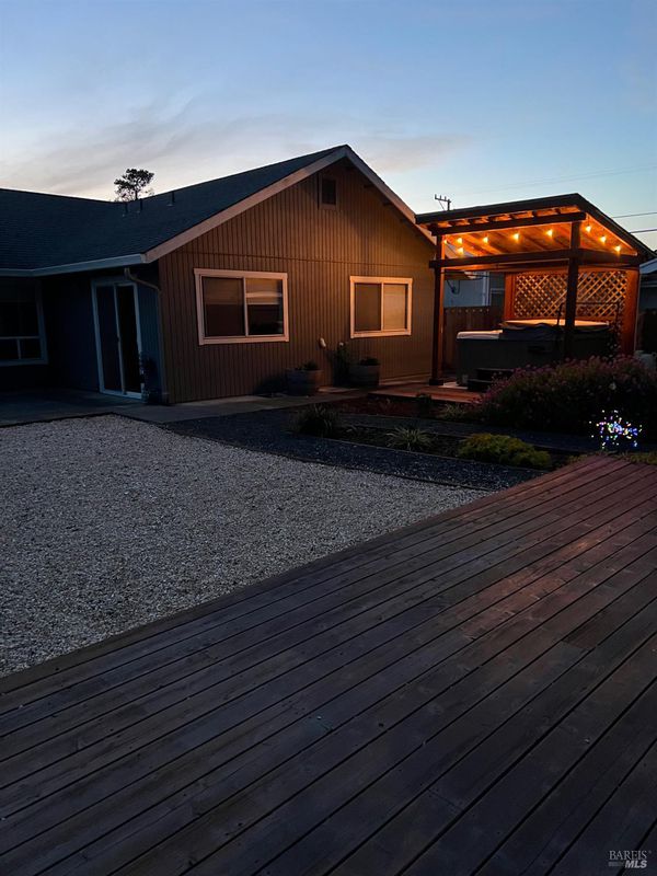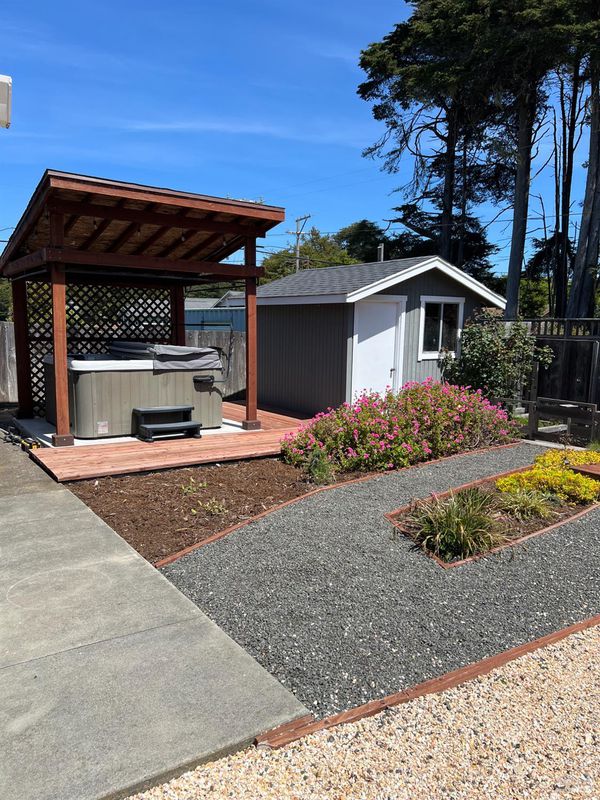 Staycation retreat in quaint coastal town! Front and backyard, professionally landscaped in 2023 with native, drought tolerant plants, makes it easy to maintain and provides spacious outside living, with luxury spa and gazebo. Electrical wiring with 50 amp panel to shed was installed in 2018. Upscale appliances - refrigerator, range, dishwasher, washer and dryer were purchased approximately 2024. Designer tile in the kitchen and main bath (with radiant floor heat) installed by previous owner who owned a tile business. Primary bedroom suite includes sitting room/office, primary bath with bidet and walk-in closet. Livingroom propane fireplace inset, installed by Branesky in approximately 2017, has a convenient remote control and no need for electricity. Forced air heating system was checked in 2023 and only required an igniter coil. Assumable loan may be available.