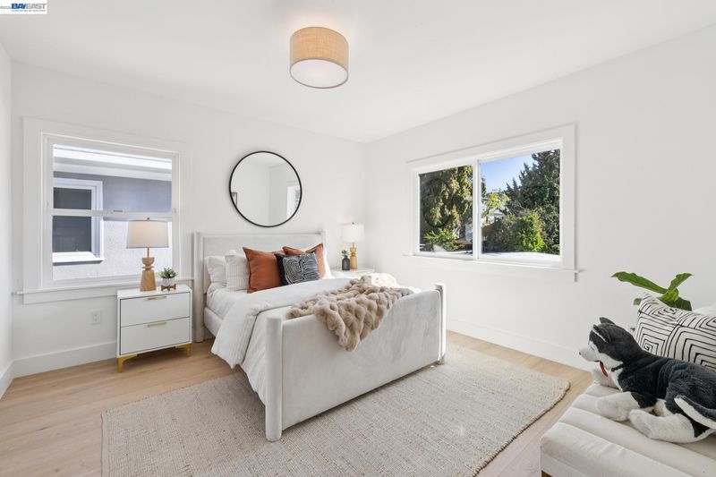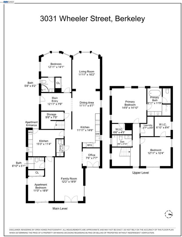 Reimagined in a modern farmhouse style, this rare Lower Elmwood compound offers flexibility, style, and opportunity across three distinct, fully rebuilt living spaces totaling 3439 square feet. Ideal for multigenerational living (main house, au pair/private office, and detached 2-bedroom guest house), income, or room to grow, the property balances connection, privacy, and ease. The main home (3BD/3.5BA, 2212 sq ft) is filled with natural light and designed for both everyday living and gathering. From the front sitting room with bay window to the dining area and into the chef’s kitchen and family room, the flow feels effortless, with oak flooring throughout. Custom cabinetry, Café appliances, and a generous island create a kitchen that is both beautiful and functional. French doors open to the backyard, extending the living space outdoors. The lower level includes a bedroom with ensuite bath, an office, powder room, and ample storage. Upstairs, two additional bedrooms include a serene primary suite with a spa-like split bath and walk-in closet, along with a second bedroom with Berkeley Hills views and a modern hall bath. Attached to the main home with its own entrance, the 1BD/1BA, 378 sq ft au pair apartment features a new full kitchen, charming covered porch for outdoor reading or morning coffee, and a modern bathroom. This space can also serve as a private office, well suited for meeting clients apart from the main home. The detached, two-story ADU (3031A Wheeler: 2BD/1.5BA, 849 sq ft) is a luxurious, full-service guest house, complete with kitchen, living area, laundry, and generous storage. It is equally well suited for multigenerational living or income. Thoughtfully updated with modern systems, the property offers added peace of mind, efficiency, and potential advantages for insurance and long-term maintenance. New improvements include zoned heat, mini-splits with A/C (in both ADUs), roof, foundation, electrical wiring and panels, windows, and more. All kitchens and bathrooms are newly built with stylish finishes and brand-new appliances. The freshly landscaped level backyard features a large, lush lawn and multiple patios, perfect for outdoor gatherings, play, barbecuing, and al fresco dining. Multiple off-street parking spaces, a custom metal privacy gate, and additional storage complete the property. All just blocks from BART, Whole Foods, Berkeley Bowl, and the best of Berkeley’s shops, dining, & culture. Sewer lateral compliant. Energy score: 7.