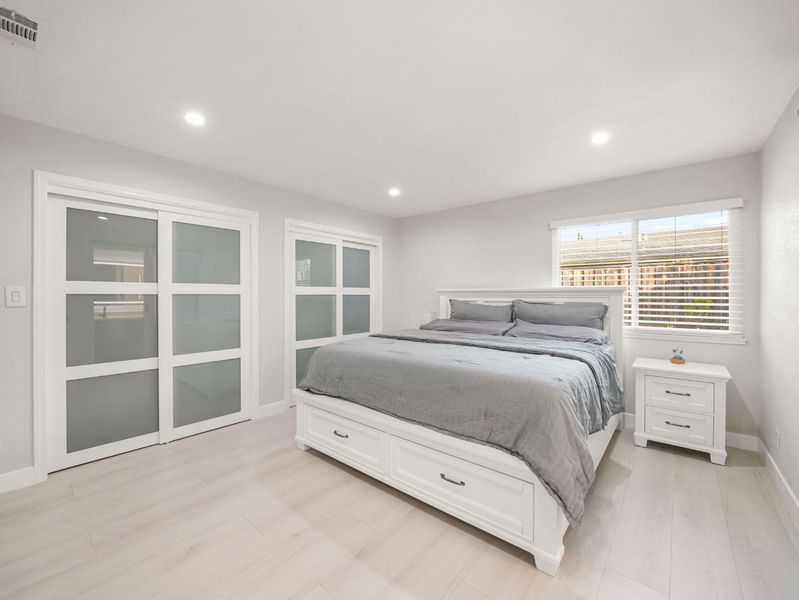 Prepare to be captivated by this meticulously reimagined residence at 14 Via Campina, where ultra-modern design meets total home comfort. Situated on a quiet cul-de-sac with an expansive lot, this home has been curated with a "no-expense-spared" philosophy. The show-stopping chef's kitchen is a viral-worthy centerpiece, featuring a massive quartz waterfall island, custom two-tone cabinetry, and premium stainless steel appliances. The open-concept layout flows into a living space anchored by a designer floor-to-ceiling stone media wall with an integrated linear fireplace, perfect for entertaining. Sophisticated bathrooms boast frameless glass enclosures and modern vanities. Throughout the home, you will find wide-plank LVP flooring, recessed LED lighting, and energy-efficient double-pane windows. Step outside to a low-maintenance backyard featuring a dedicated storage shed for all your needs. Enjoy unbeatable access to major commute routes, including Hwy 85 and Hwy 101, and live just minutes from premium shopping at Village Oaks, Costco, Target, and Oakridge Mall. For outdoor enthusiasts, the Santa Teresa Foothills are practically in your backyard, offering world-class hiking, mountain biking, archery, and golf.