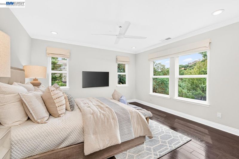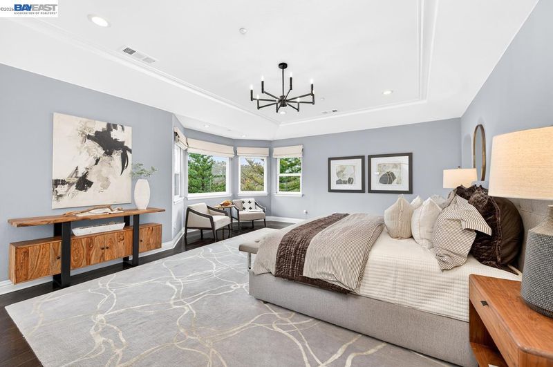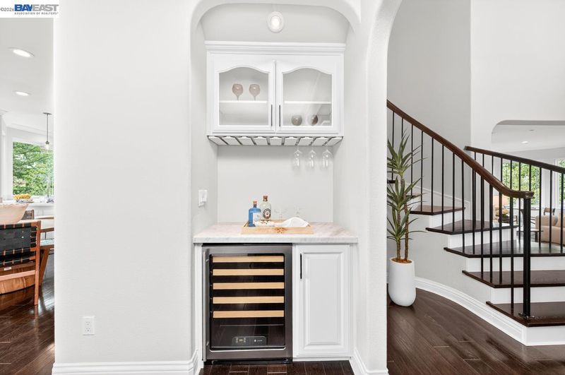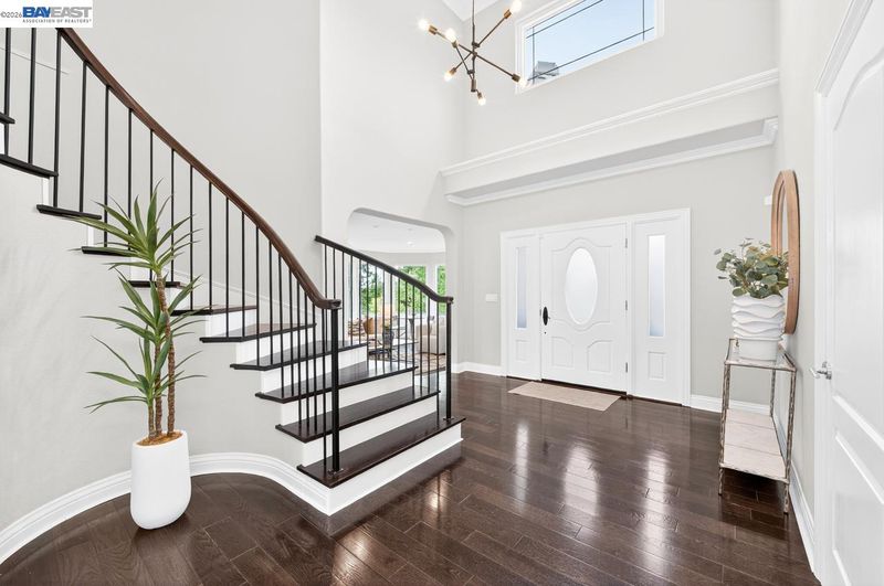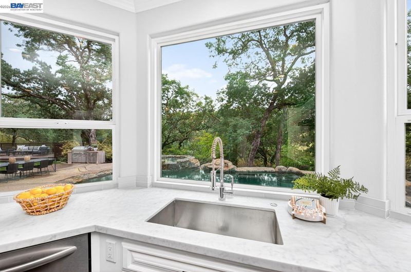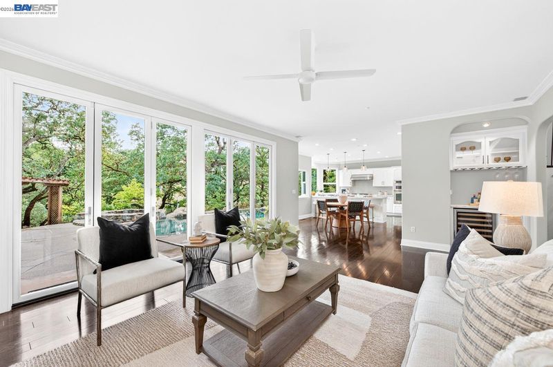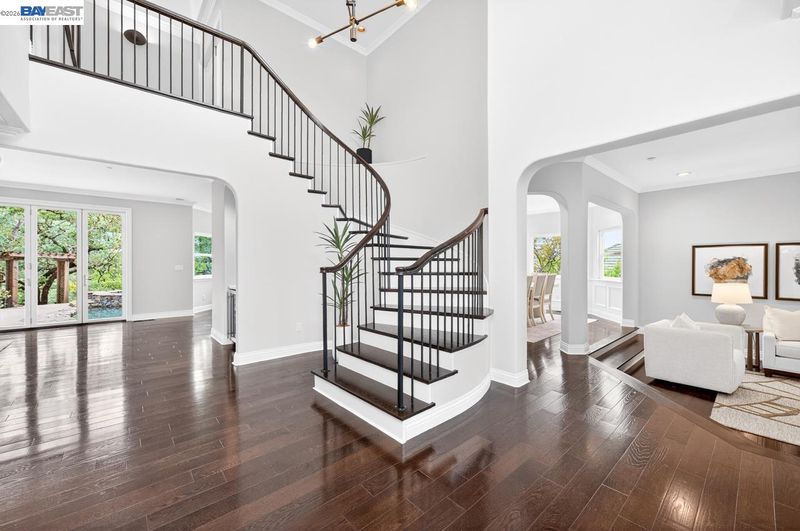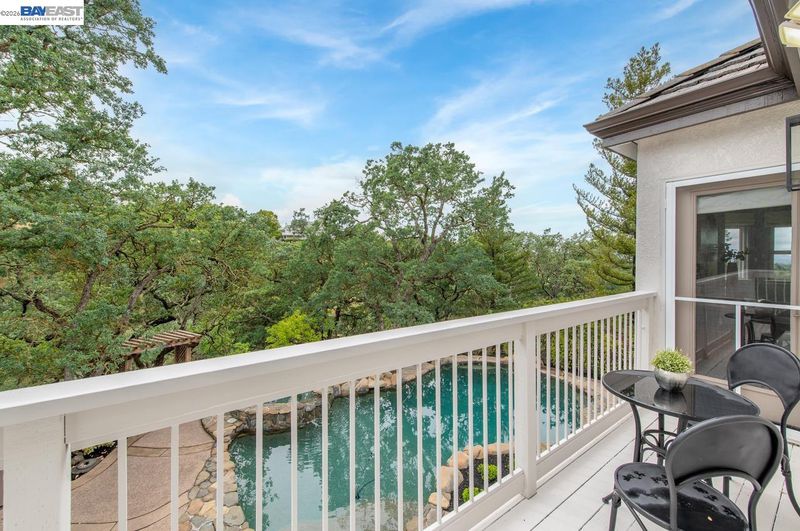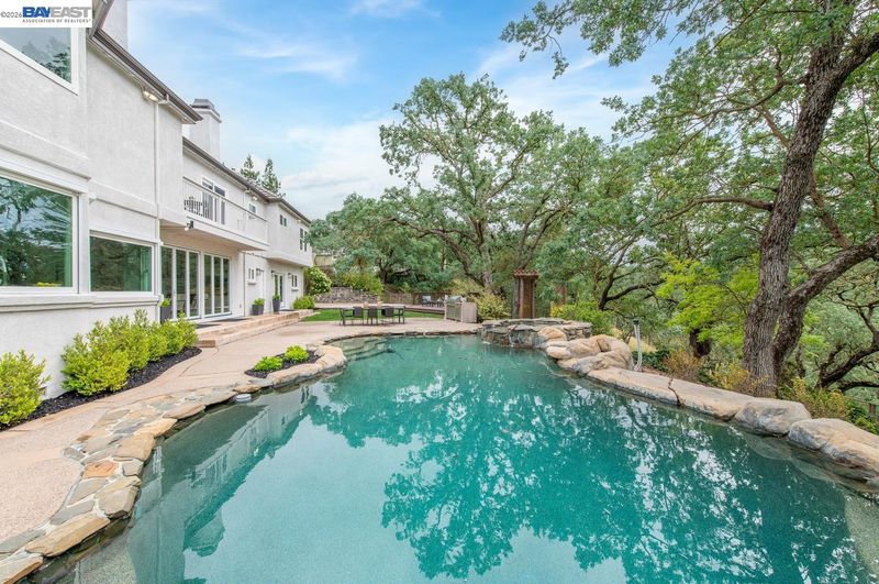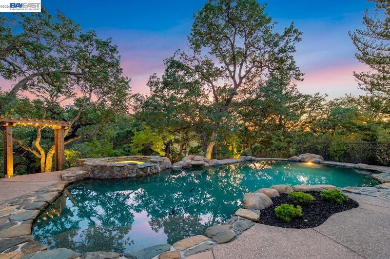 Perched among Kottinger Ranch’s iconic oak-studded hills, this custom home captures sweeping views and effortless California living at every turn. Wide plank hardwood floors, a sweeping iron staircase and recessed lighting flow throughout. The chef’s kitchen features soft honed Carrara marble counters, breakfast bar and sun-filled dining area, opening to a warm and inviting family room with gas fireplace and wine bar. Expansive retractable glass wall doors create a seamless indoor-outdoor experience, extending living space to the backyard—ideal for entertaining. A main-level bedroom and full bath provide ideal guest or multigenerational living. Upstairs, the expansive primary suite offers a fireplace insert, private balcony, and serene views. A spacious bonus room (optional 6th bedroom) and upstairs laundry add flexibility and convenience. Fresh exterior paint and lush landscaping enhance curb appeal. The backyard is a true retreat with a lagoon-style pool, outdoor BBQ island, generous patio space, and direct access to scenic hiking trails among heritage oaks. Additional highlights include a three-car finished garage with epoxy floors and built-in cabinetry. Enjoy a prime location with the ability to walk to historic downtown Pleasanton and nearby Vintage Hills school, with quick access to wineries, hiking trails, parks, and highways. Community amenities include pool, park, tennis, and pickleball.