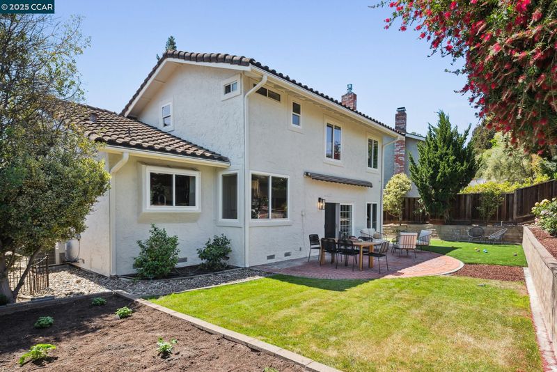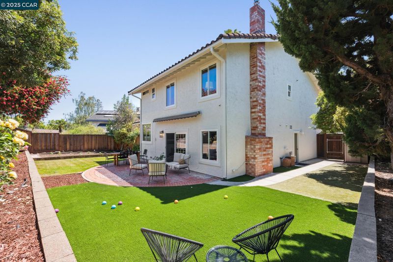 Nestled near the end of a court that opens to sprawling greens sits this beautifully remodeled 3 bedroom, 2.5 bath plus thoughtfully designed office. You are greeted by vaulted ceilings, beautiful wide plank floors & designer light fixtures. The custom office space is complete with soundproof French doors overlooking a mature citrus tree. The heart of the home unfolds into a spacious kitchen, featuring granite countertops, Mediterranean plaster backsplash, abundant storage space & stainless steel appliances. The sunken family room w/ gas fireplace & wet bar is perfect for entertaining or a cozy night in. The first floor also features a half bath, large laundry room & direct garage access with new insulated door for energy efficiency. Step outside into a private backyard oasis with a curved brick patio & blend of lush sod & practical turf offering versatility for play or relaxation. Ascend the wide staircase to the upper level with 2 spacious bedrooms & bathroom. The primary suite boasts vaulted ceilings & fully remodeled spa-like bathroom w/ custom-built vanity & freestanding soaking tub. This home includes a new HVAC system, water heater & custom window coverings. Its location is ideal w/ access to the natural beauty of Hidden Lakes park, great schools & easy freeway access.